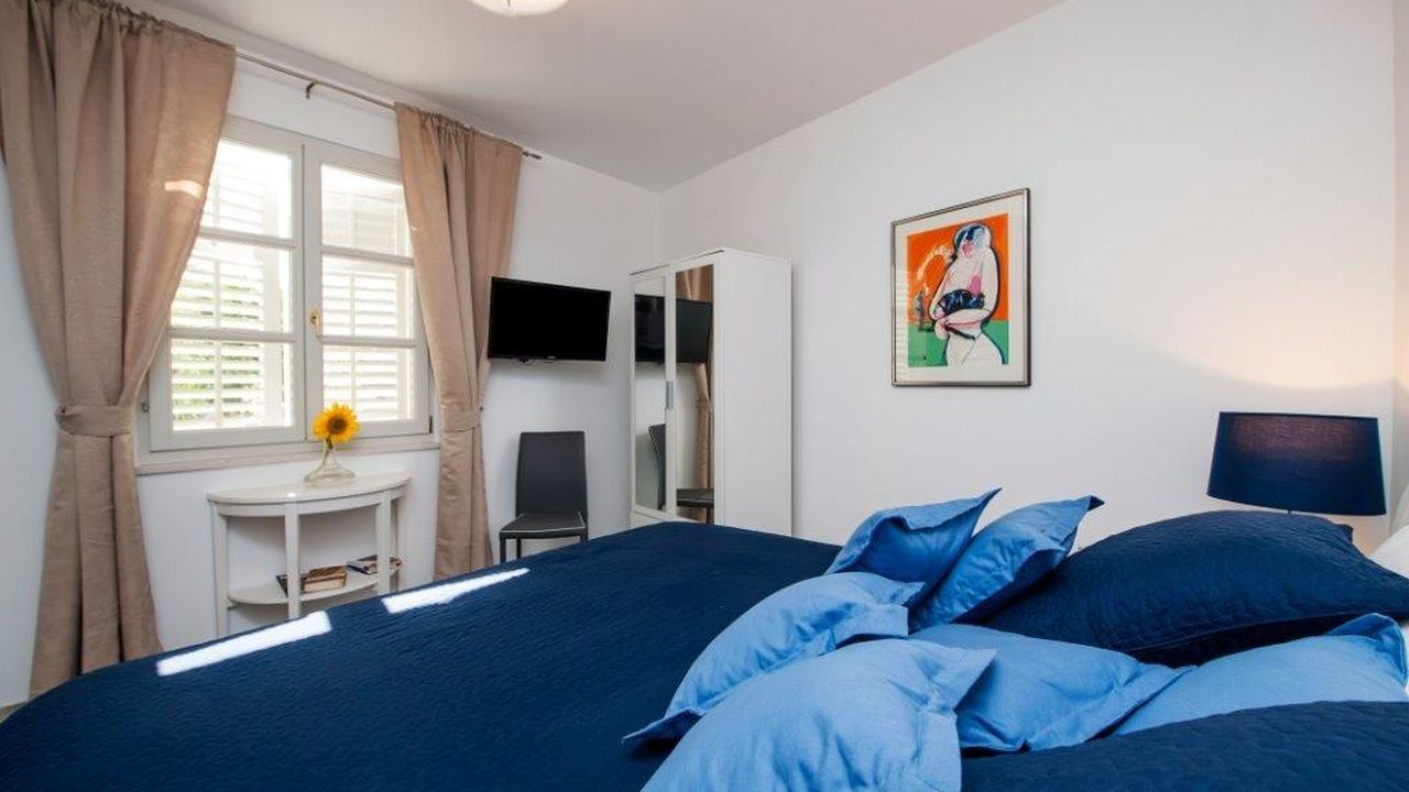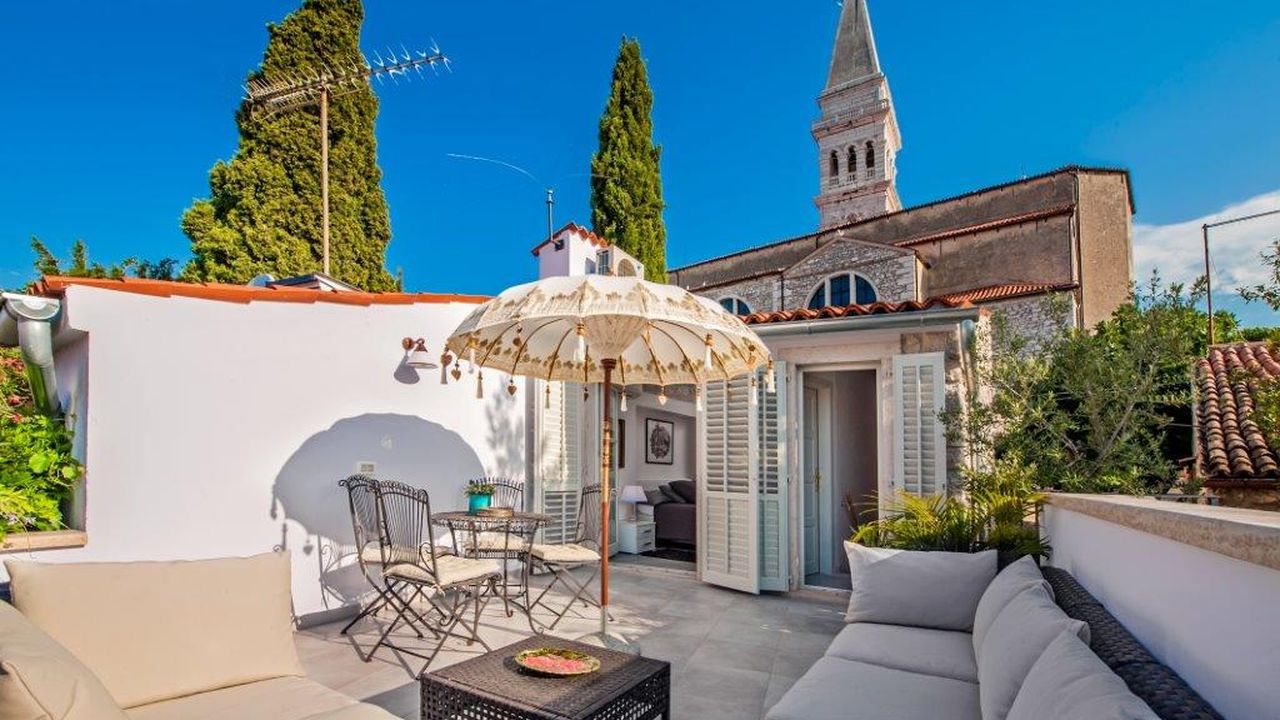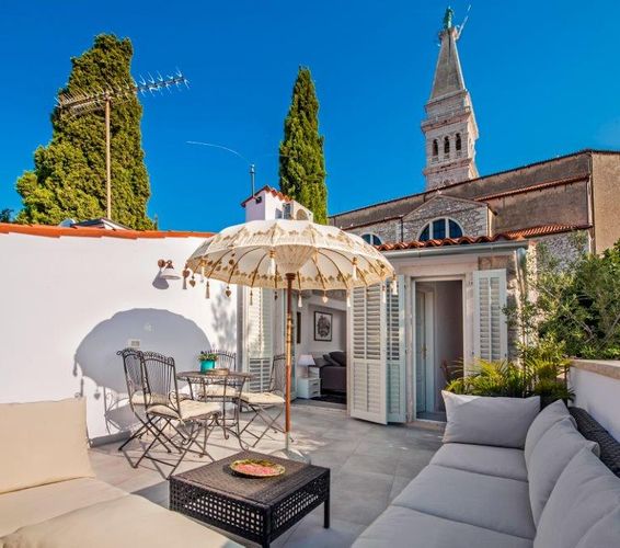 ОПИСАНИЕ: Дом расположен на двух этажах. На первом этаже находится кухня с обеденной зоной, спальня и ванная комната. Лестница ведет на второй этаж, где находится еще одна спальня с ванной комнатой и замечательной большой террасой с открытым видом на море и церковью Св. Евфимия. Дом полностью отремонтирован и оборудован.