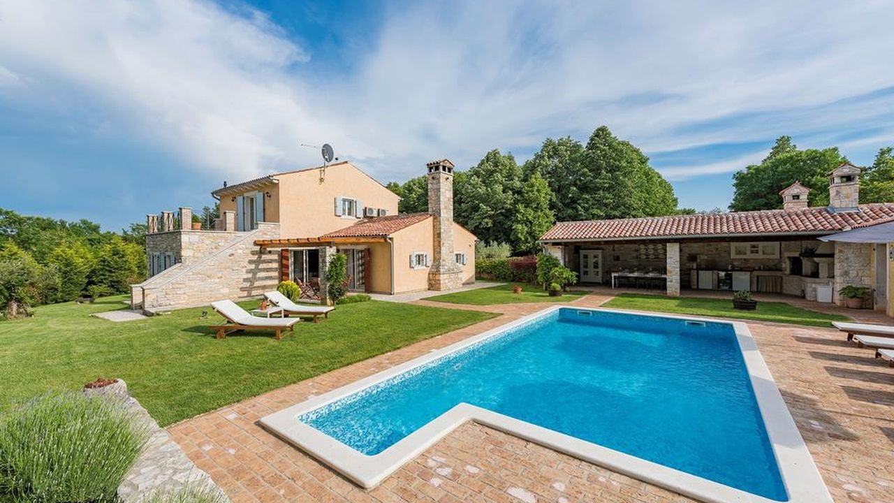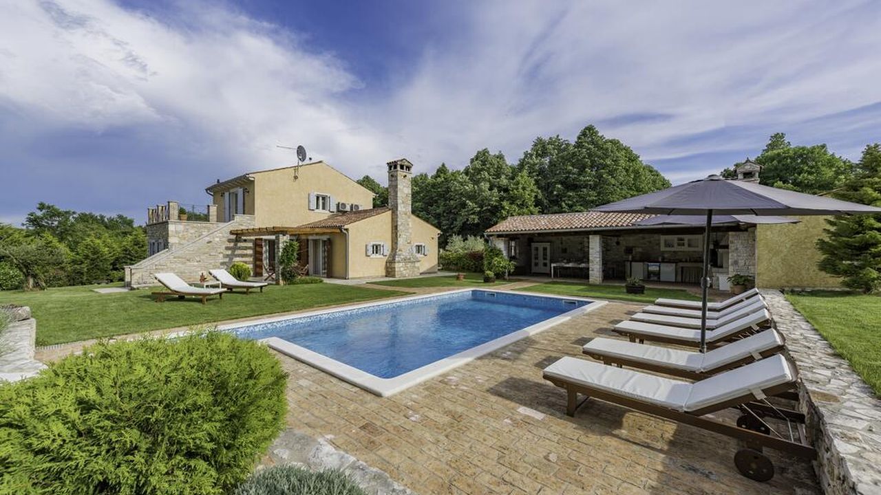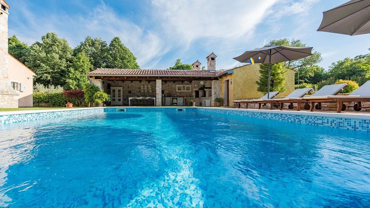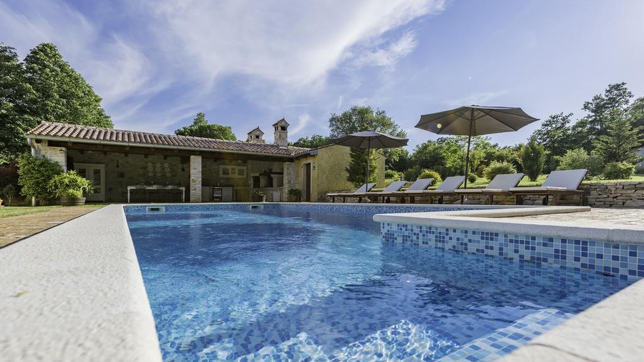 Farmhouse style luxury, fully air-conditioned villa with 4 bedrooms, 4 bathrooms, a summer kitchen (38 m2), wine cellar ,sauna, large pool and garden.