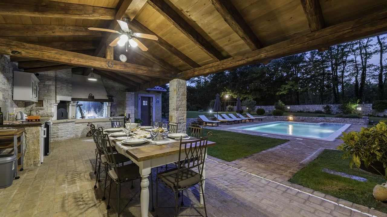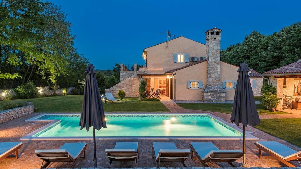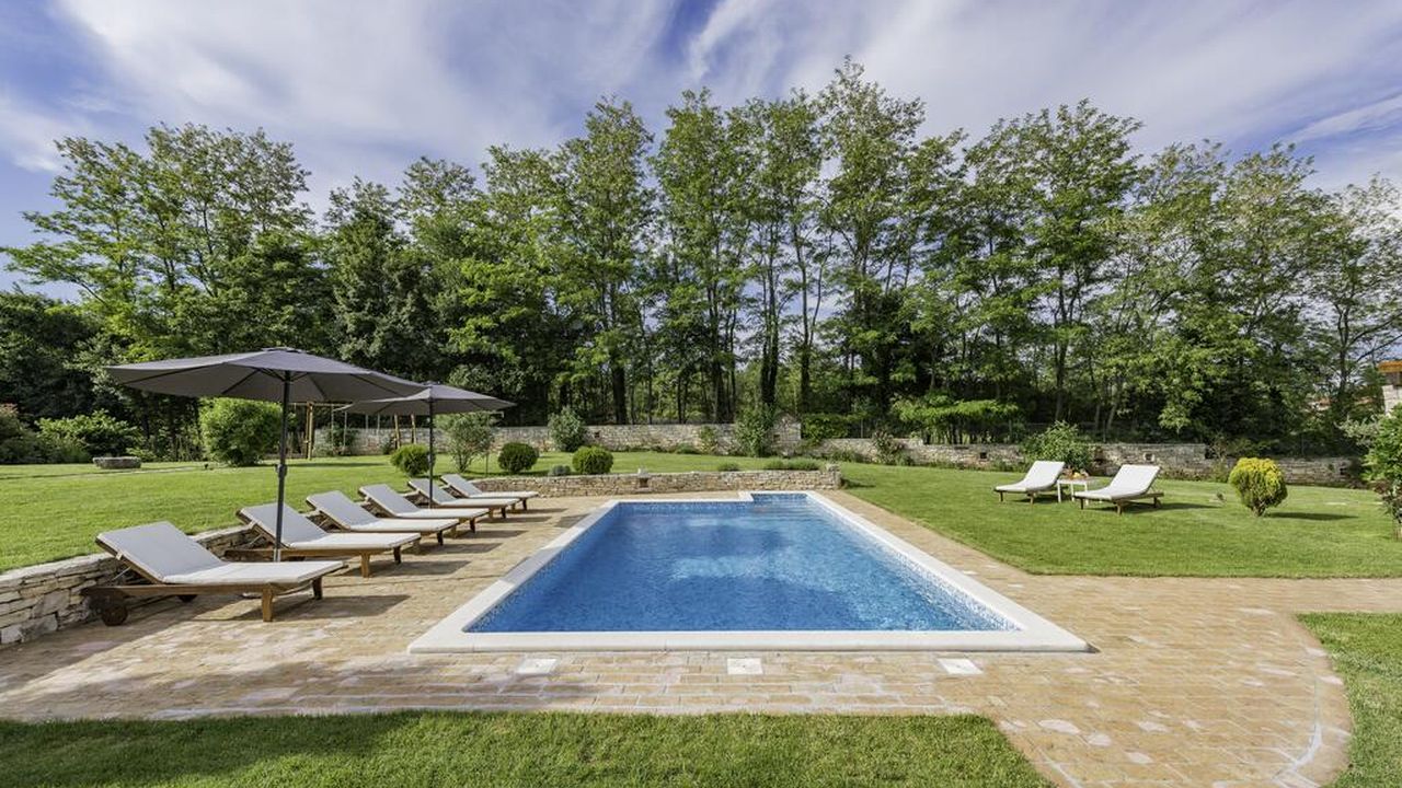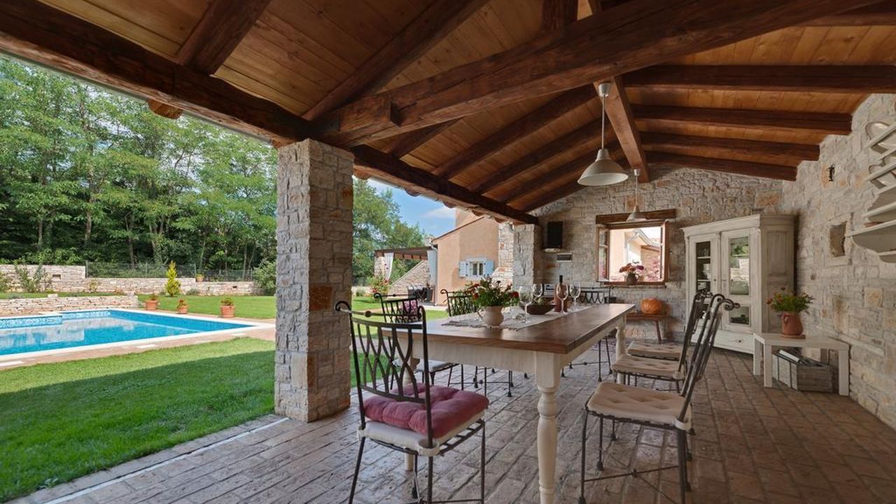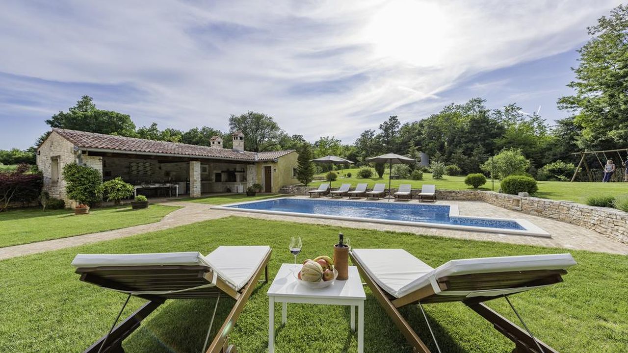 Farmhouse style luxury, fully air-conditioned villa with 4 bedrooms, 4 bathrooms, a summer kitchen (38 m2), wine cellar ,sauna, large pool and garden.
