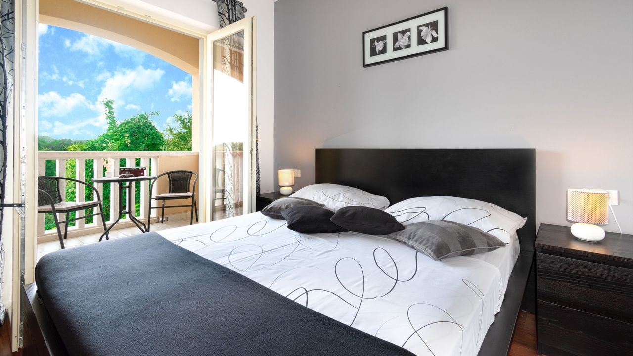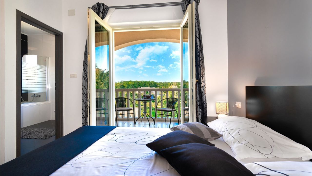 и выходом на балкон с видом на сельскую местность