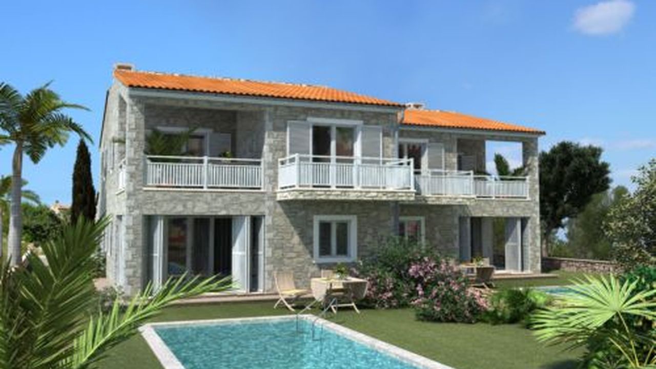 Предлагаются к продаже восхитительные сдвоенные таунхаусы с бассейнами и видом на море в очаровательной деревушке в 18 км от Пулы.