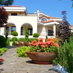На участке имеется ухоженный сад со средиземноморскими растениями.
