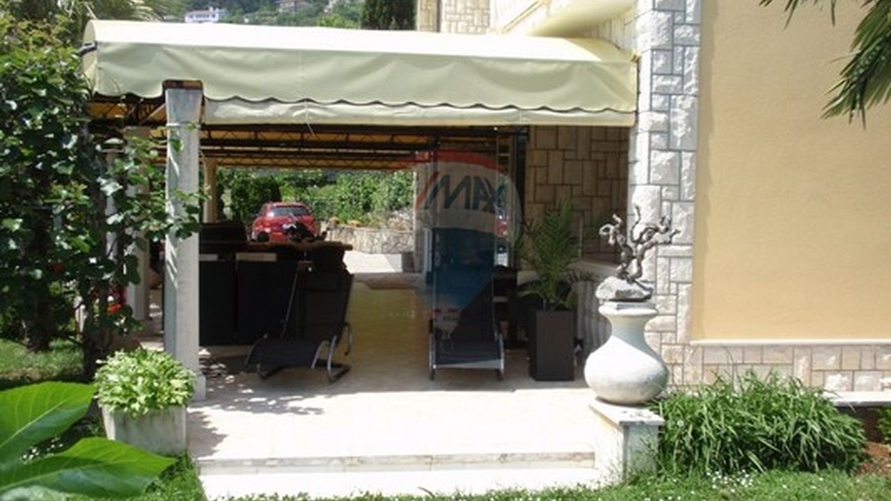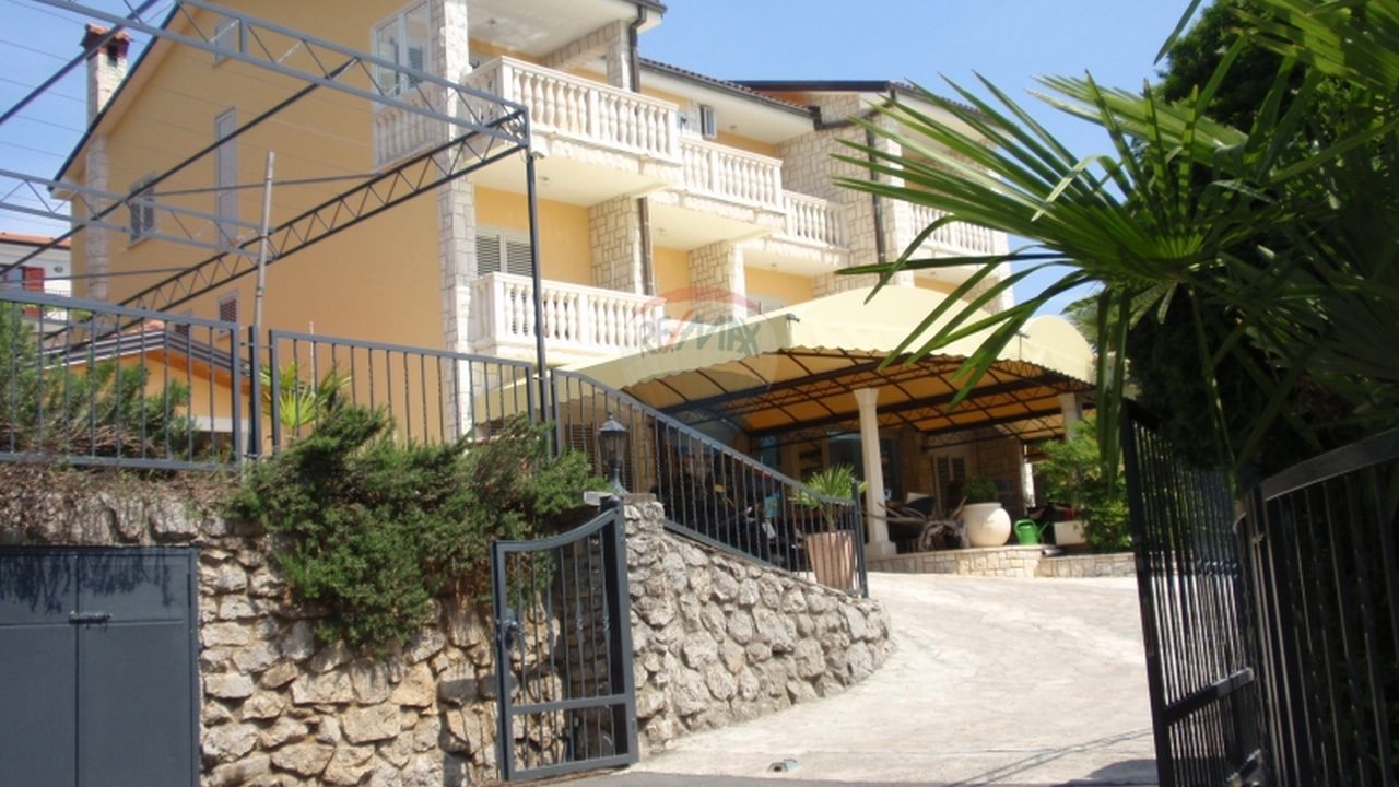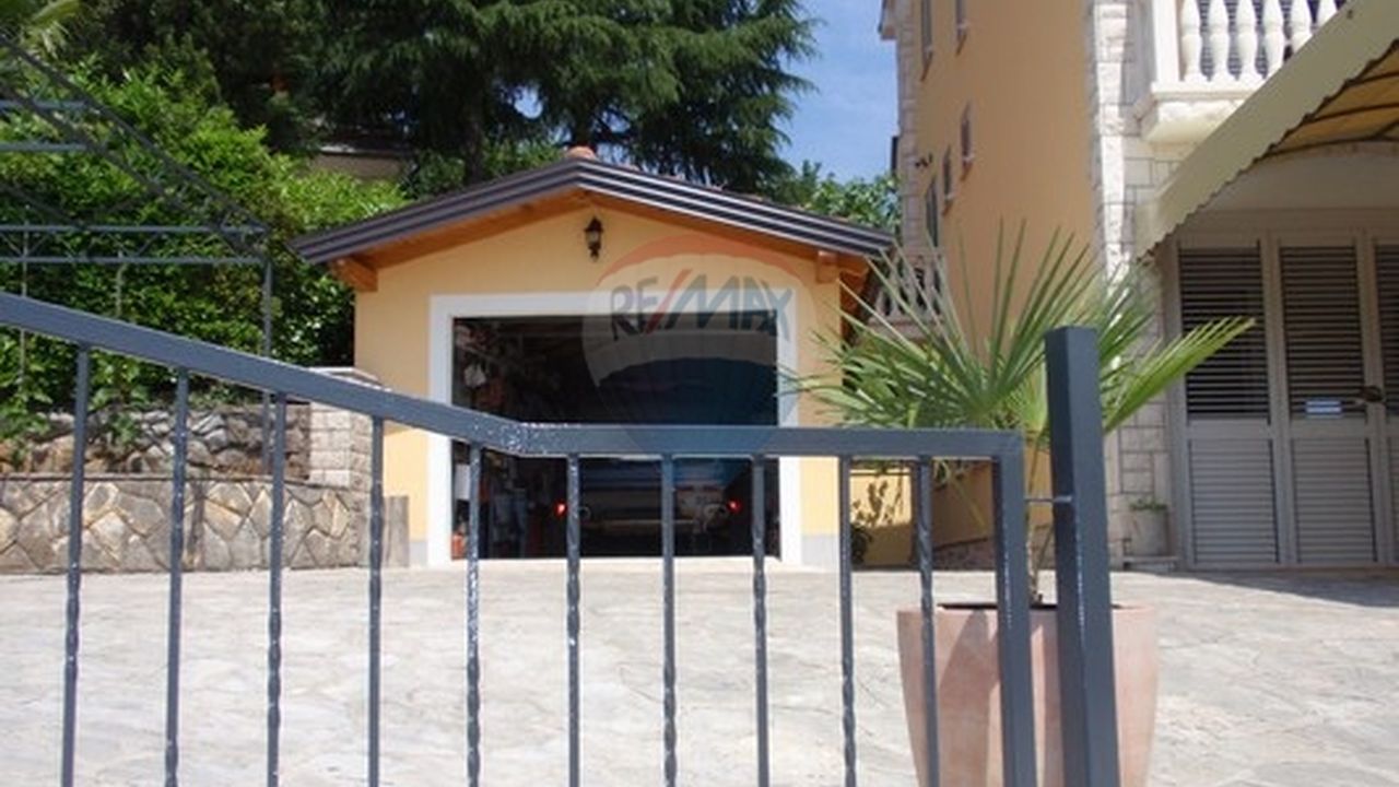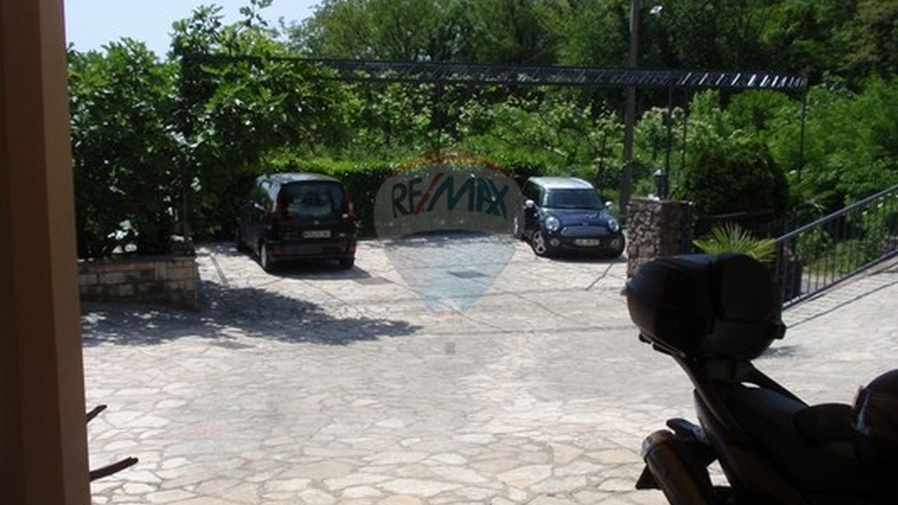 Парковка достаточно большая, может вместить 12 автомобилей, а также большой гараж на 2 машины. Площадь дома 450 м2, площадь участка 1393 м2.