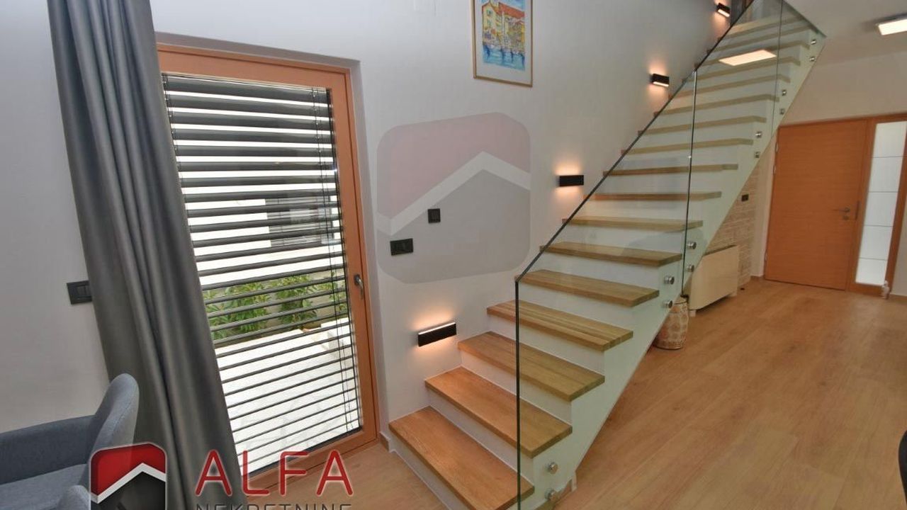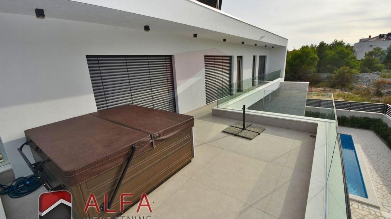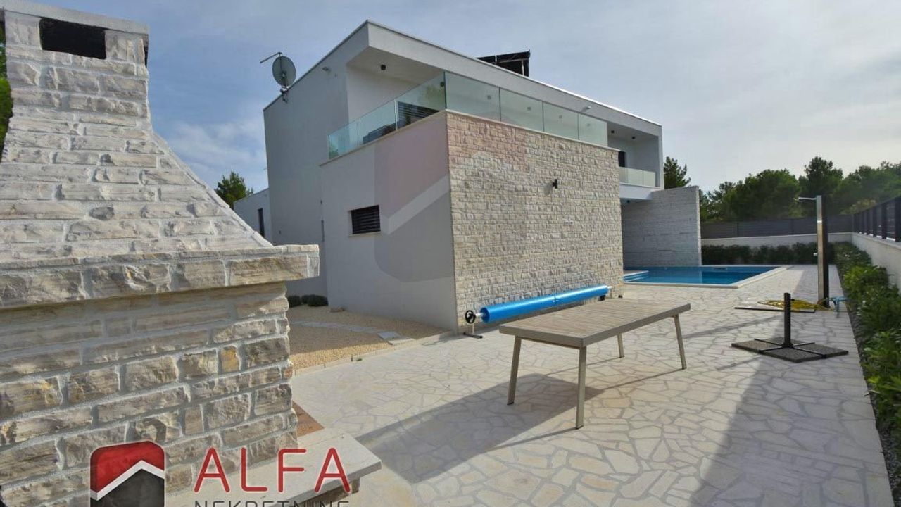 Хорватия, Водице, Срима, продается красивый, новый, отдельно стоящий дом, расположенный в 500 м от моря. Этот роскошный современный дом состоит из цокольного, первого и второго этажей. Общая жилая площадь составляет 259 м2, и он расположен на земельном участке размером 516 м2.