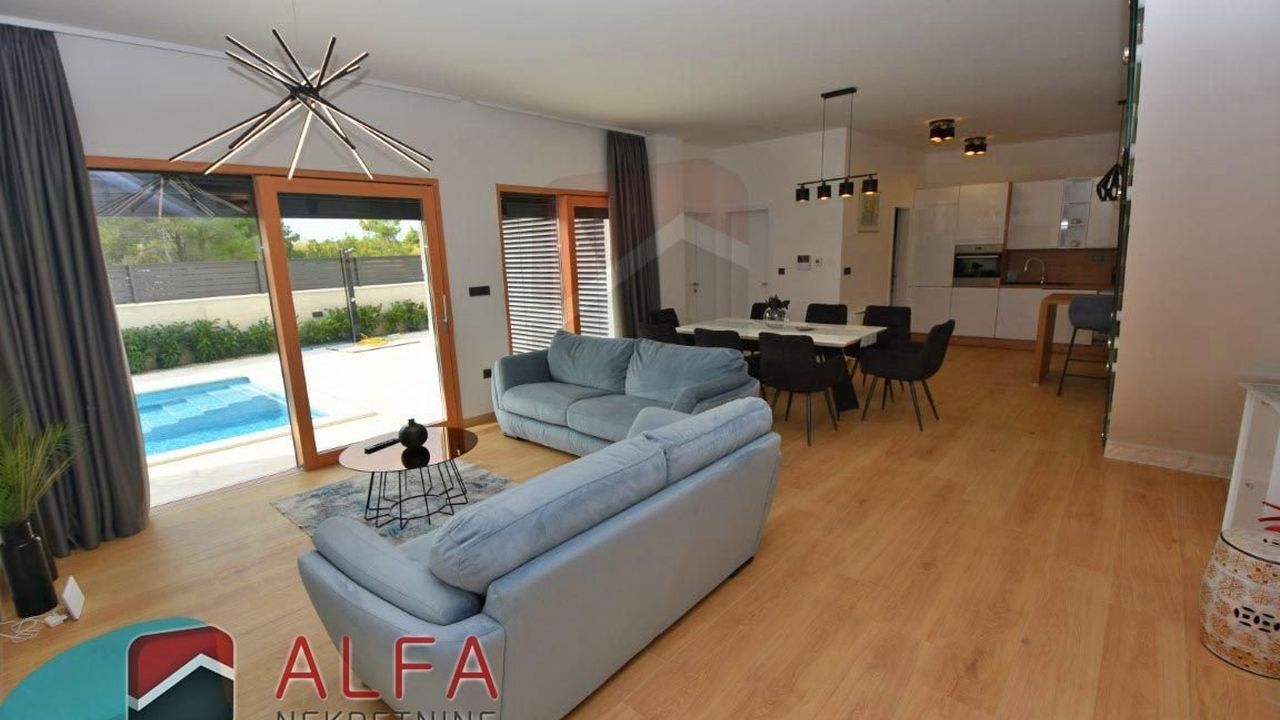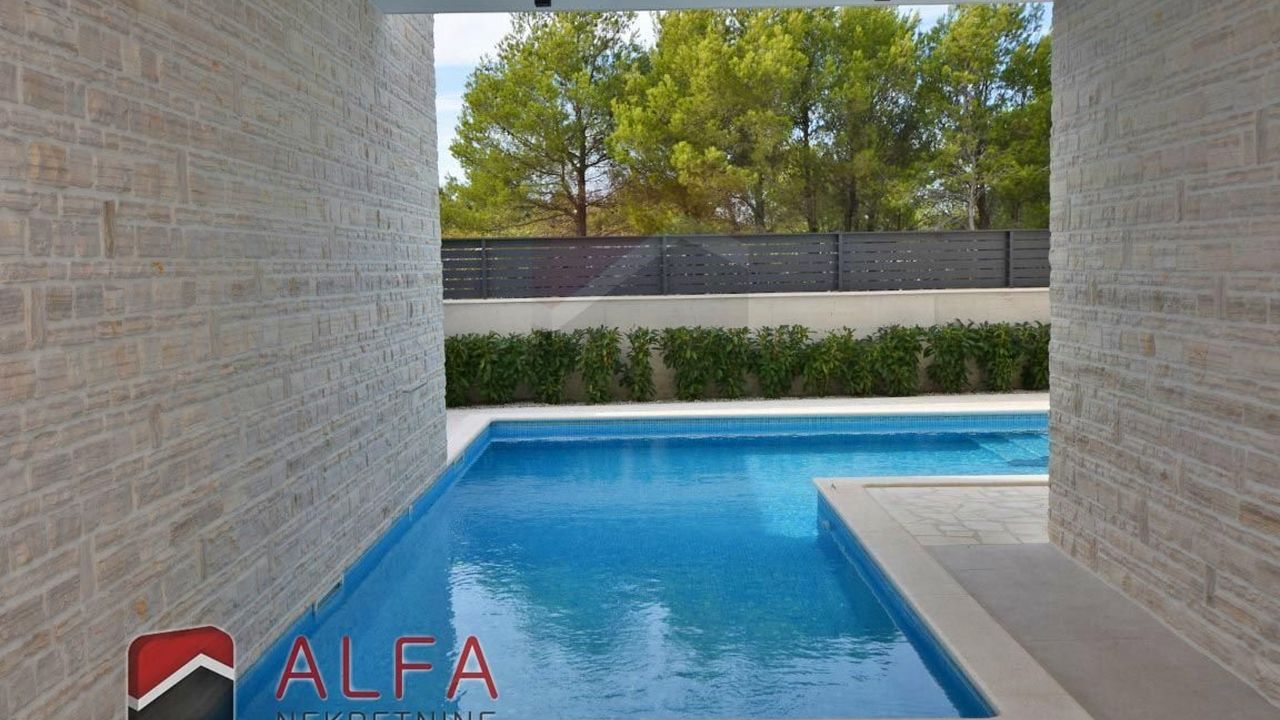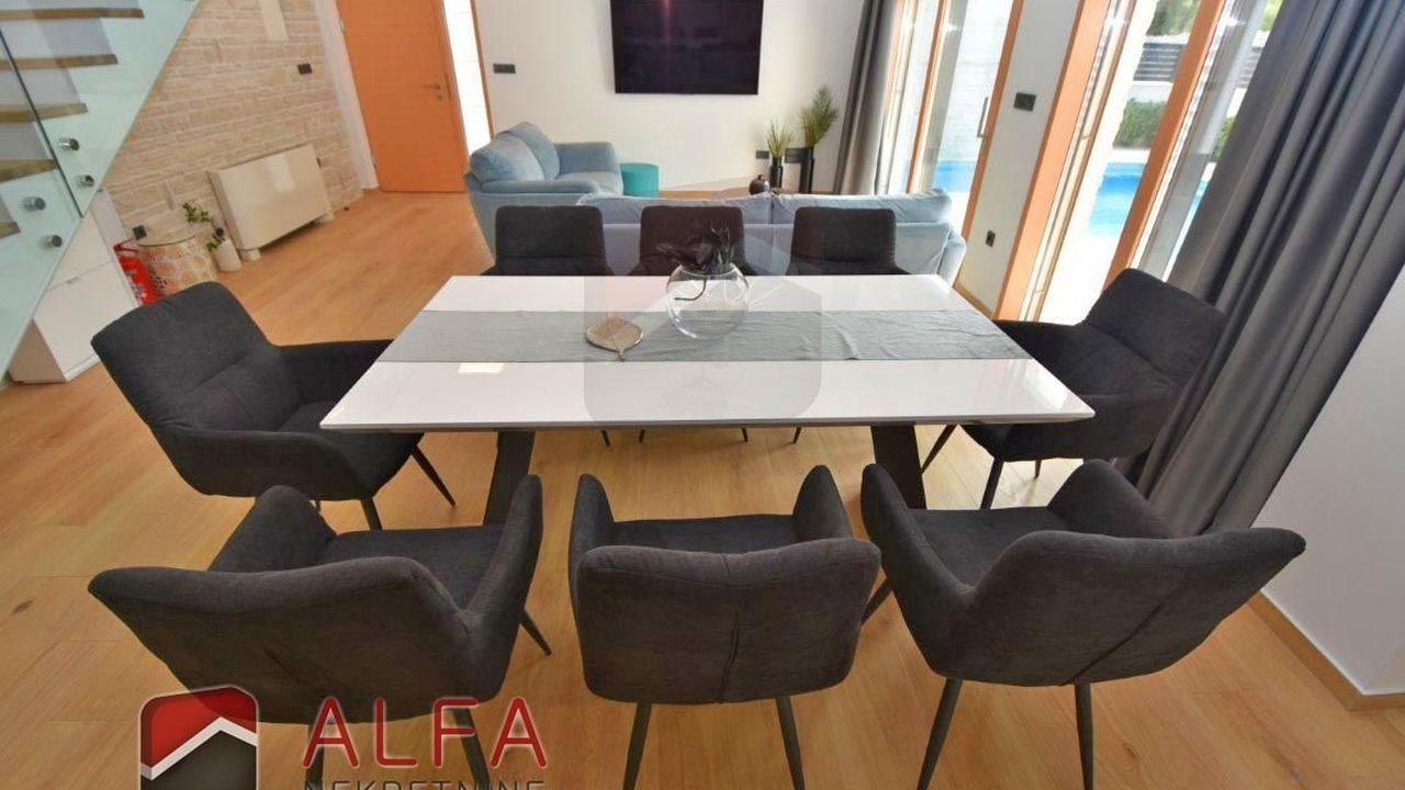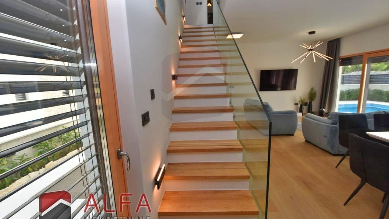 Хорватия, Водице, Срима, продается красивый, новый, отдельно стоящий дом, расположенный в 500 м от моря. Этот роскошный современный дом состоит из цокольного, первого и второго этажей. Общая жилая площадь составляет 259 м2, и он расположен на земельном участке размером 516 м2.