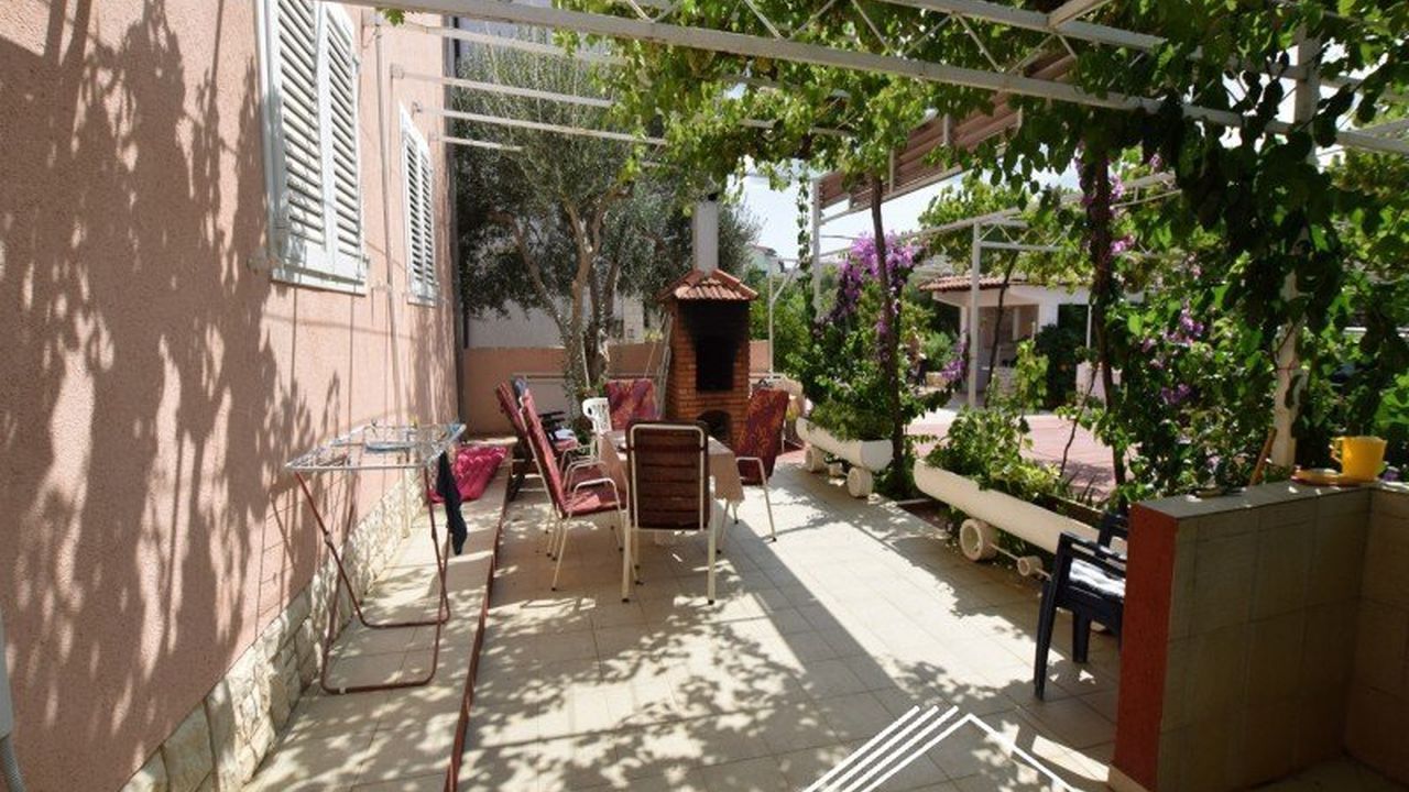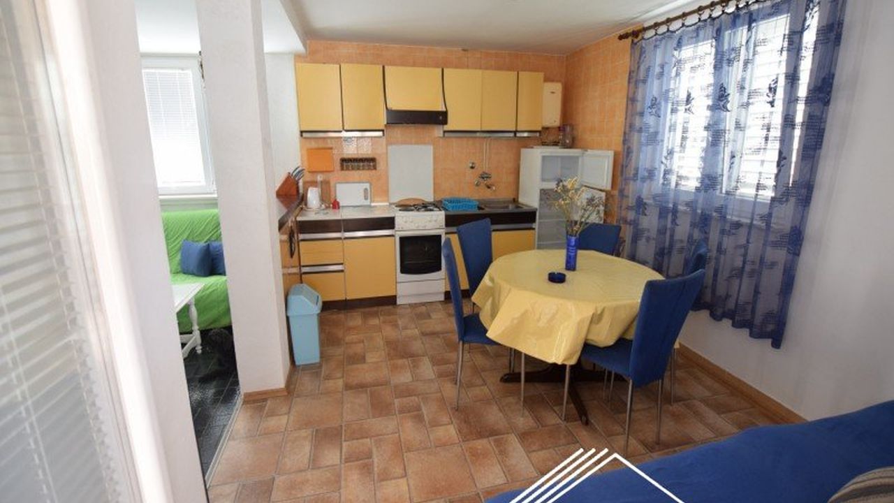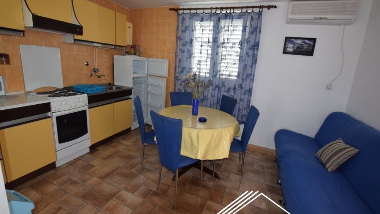 This well maintained and solidly built house, in the first row to the sea, is located near Primosten. The furnished house has a total area of 150 m2 with a plot area of 333 m2. The object consists of a ground floor and an upper floor and was renovated 7 years ago. On the ground floor there are: living room, 3 bedrooms, kitchen and a bathroom. On the first floor is an kitchen-living room, extended by a covered terrace, overlooking the sea, 2 bedrooms, as well as a bathroom. The ground floor has central heating and the courtyard offers parking for 4 cars.