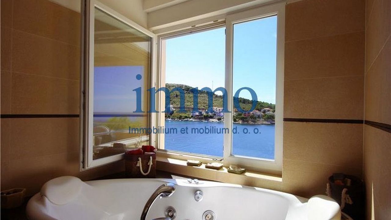 Продается роскошная двухэтажная вилла, расположенная на побережье в пригороде Примоштена. Вилла была построена на большом (1.300m2) участке с прямым доступом к прекрасному пляжу с причалом для лодки. Вилла прекрасно вписывается в окружающую природу, ее дизайн очень уникальный, элегантный и современный, с интеллектуальным использованием пространства и большим количеством естественного света, полностью меблирована и оборудована.
