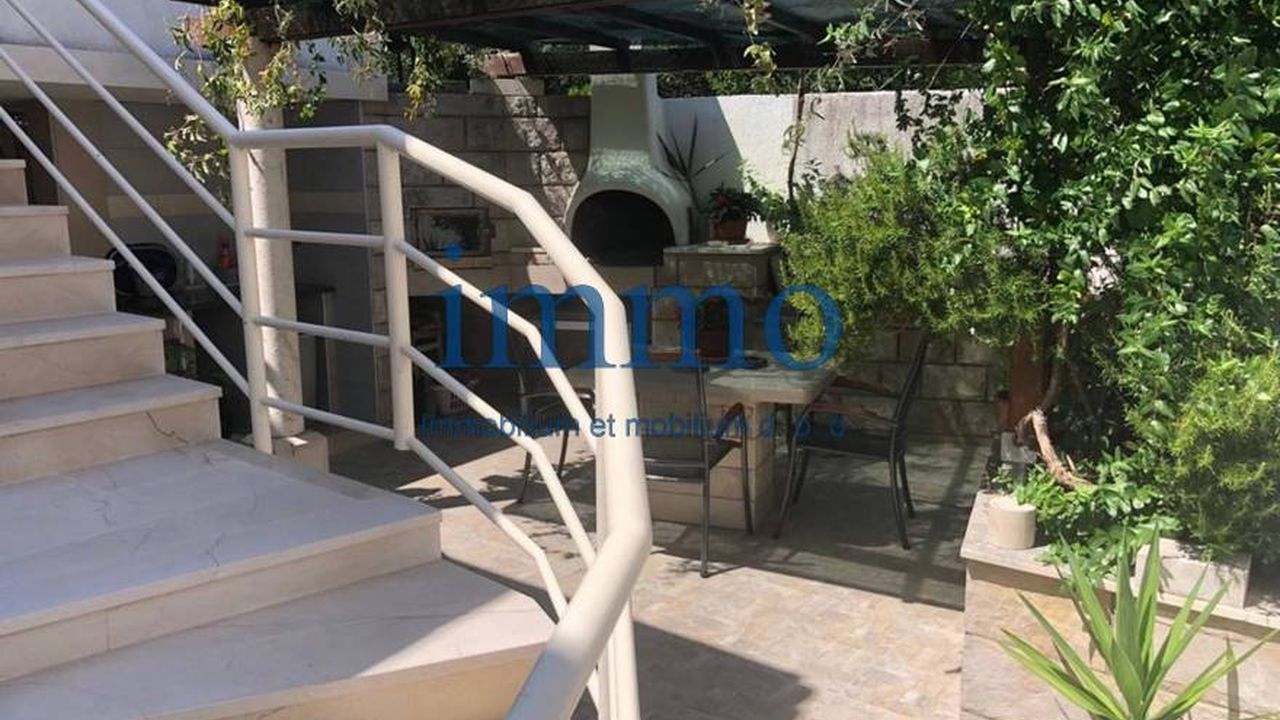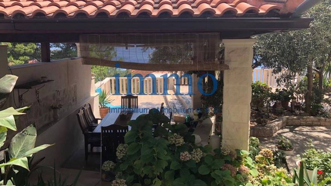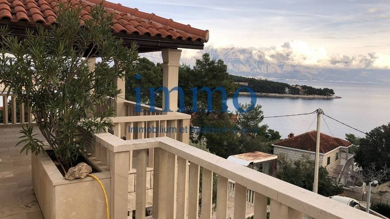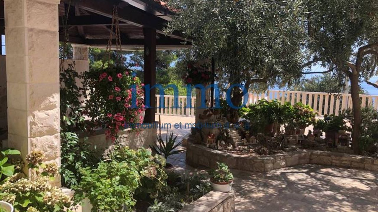 Продается красивый трехэтажный дом, расположенный в тихом месте на острове Брач. Первый этаж состоит из кухни (17 м2), таверны (22 м2), прачечной и апартамента площадью 50 м2, состоящего из гостиной, кухни со столовой, двух спален, ванной комнаты и террасы с гриль-барбекю. На втором этаже находится апартамент площадью 140 м2, который состоит из трех спален, одна из которых имеет собственную ванную комнату, дополнительной ванной комнаты, кухни со столовой, гостиной, крытой террасы и двух открытых террас, на одной из которых есть камин. На третьем этаже находится апартамент с четырьмя спальнями, двумя ванными комнатами, кухней, столовой, гостиной, террасами и двумя балконами. Дом полностью меблирован и оборудован и имеет центральное отопление. На участке находится гараж для трех автомобилей.