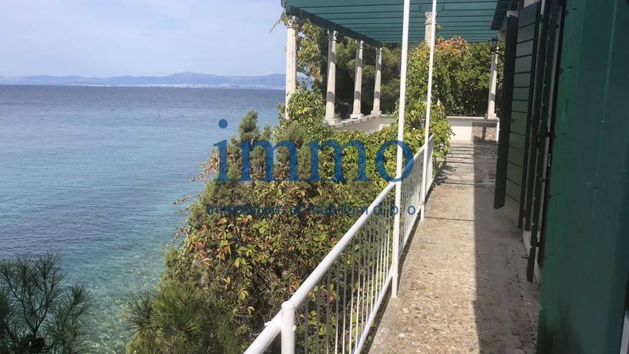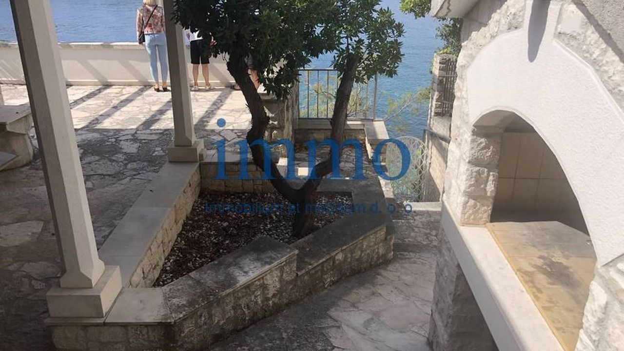 Продается красивый дом, расположенный в фантастическом месте на северной стороне острова Брач, в первом ряду от моря. Он находится на участке 470 м2 у пляжа, занимает два этажа и предлагает прекрасный открытый вид на море. Нижний этаж состоит из винного погреба и дополнительного помещения площадью 45 м2. Верхний этаж имеет жилую площадь 116 м2 со встроенным центральным и напольным отоплением. Жилая зона состоит из прихожей, кладовой, трех спален, двух ванных комнат, кухни, столовой и гостиной. Из гостиной и одной спальни есть балкон и частично крытую террасу 40 м2. Дом был построен в 1955 году, надстроен в 1975 году и полностью обновлен в 2003 году. Он находится в отличном состоянии, оборудован сигнализацией, видео наблюдением и может быть увеличен еще на один этаж. Дом окружен ухоженным участком с садом, барбекю и паркингом для двух автомобилей, под которым находится дополнительное помещение. Дом расположен в отличном месте, в тихой и защищенной бухте и подходит для комфортного проживания круглый год, гарантирует полный мир и конфиденциальность. Перед домом находятся два причала - один для лодки до 7 м и другой для лодки до 20 м.