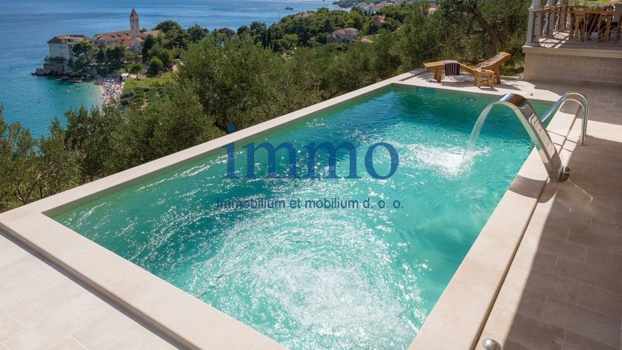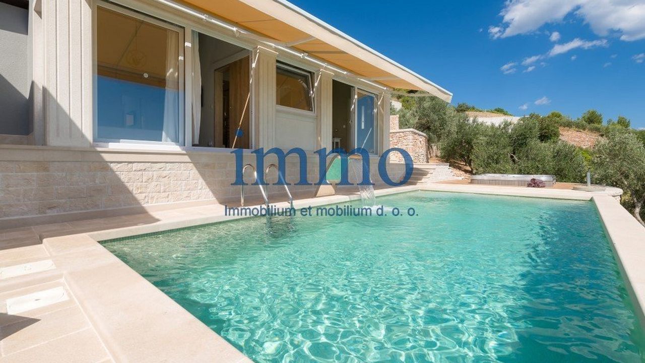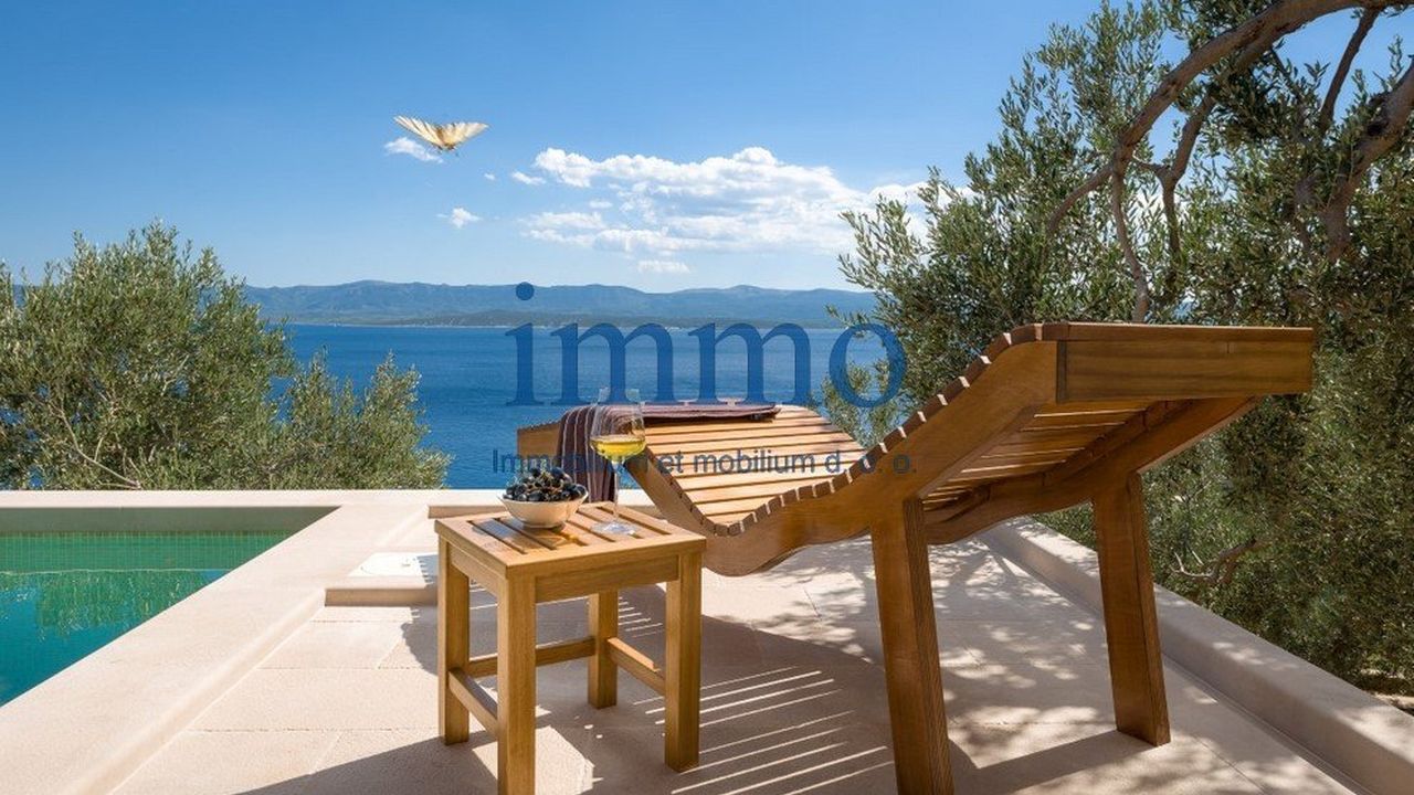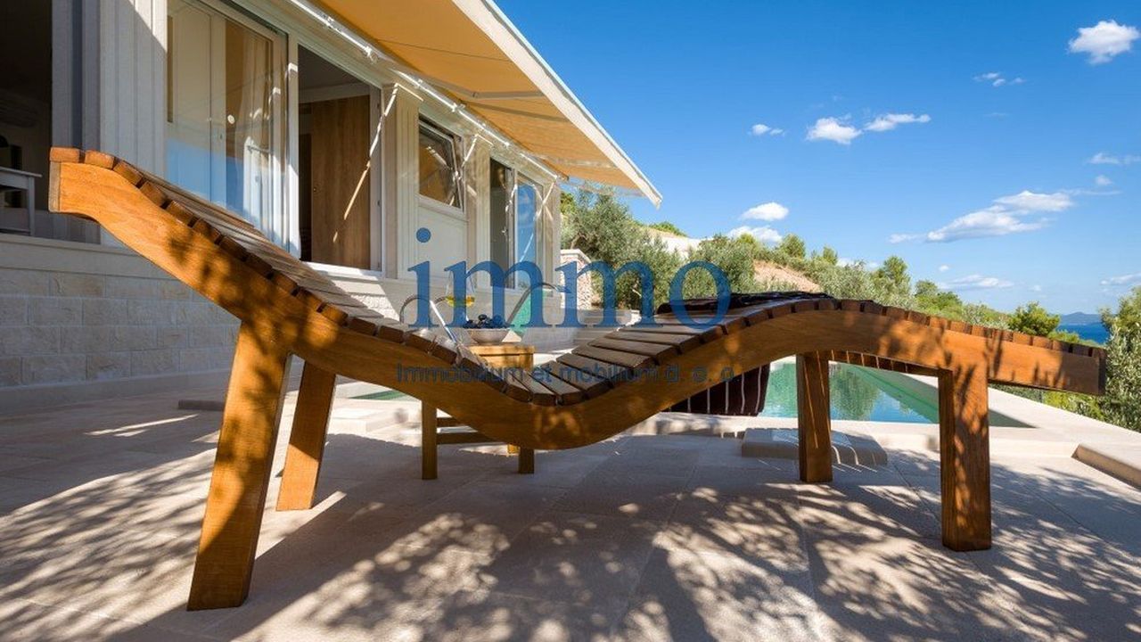 Продается прекрасная вилла 100 м2 с участком 3200 м2, расположенная в тихом месте на острове Брач, всего в 100 м от моря. Вилла состоит из двух небольших домов, соединенных в одно целое. В первом доме есть кухня с камином, спальня и ванная комната. Кухня выходит на крытую террасу 12 м2, под которой находится тренажерный зал, прачечная и дополнительное помещение с холодильниками. Второй дом состоит из двух спален и ванной комнаты. Обе комнаты выходят на террасу с бассейном и джакузи, за которой находится спа-зона с двумя саунами, ванной комнатой и массажным кабинетом. Вилла роскошно меблирована и полностью оборудована (кондиционер, качественная керамика). Участок красиво оформлен и ухожен и имеет средиземноморский сад, душ на открытом воздухе, оливковую рощу и паркинг. Эта недвижимость предлагает фантастический вид на море, гарантирует полный мир и конфиденциальность.