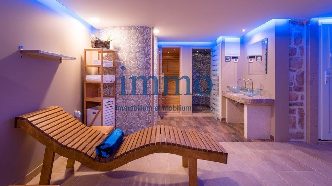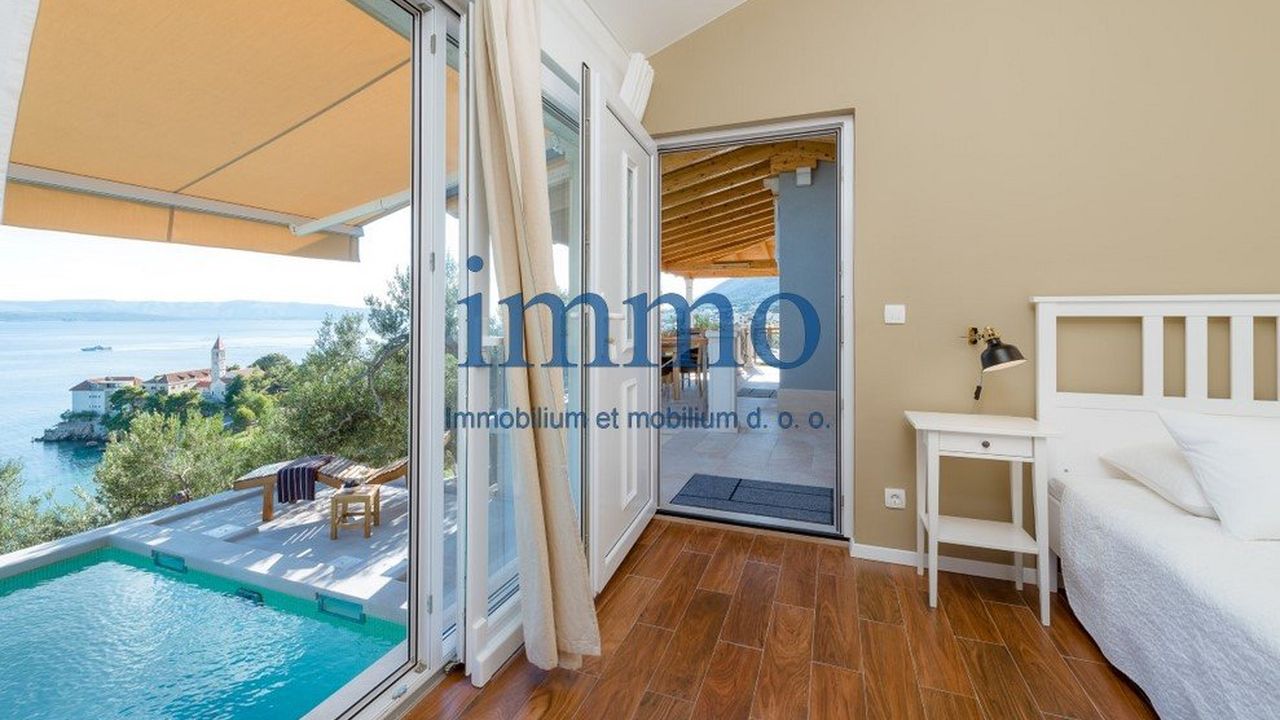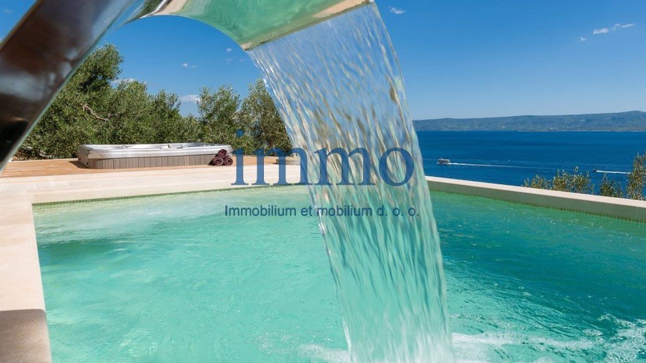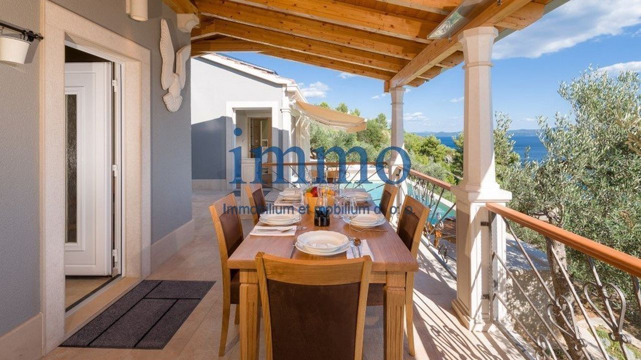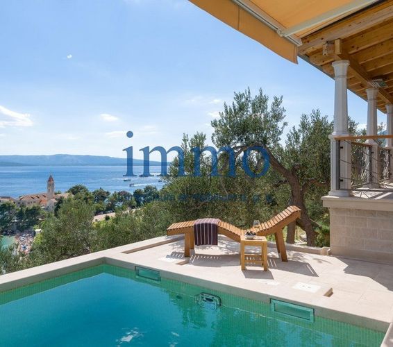 Продается прекрасная вилла 100 м2 с участком 3200 м2, расположенная в тихом месте на острове Брач, всего в 100 м от моря. Вилла состоит из двух небольших домов, соединенных в одно целое. В первом доме есть кухня с камином, спальня и ванная комната. Кухня выходит на крытую террасу 12 м2, под которой находится тренажерный зал, прачечная и дополнительное помещение с холодильниками. Второй дом состоит из двух спален и ванной комнаты. Обе комнаты выходят на террасу с бассейном и джакузи, за которой находится спа-зона с двумя саунами, ванной комнатой и массажным кабинетом. Вилла роскошно меблирована и полностью оборудована (кондиционер, качественная керамика). Участок красиво оформлен и ухожен и имеет средиземноморский сад, душ на открытом воздухе, оливковую рощу и паркинг. Эта недвижимость предлагает фантастический вид на море, гарантирует полный мир и конфиденциальность.