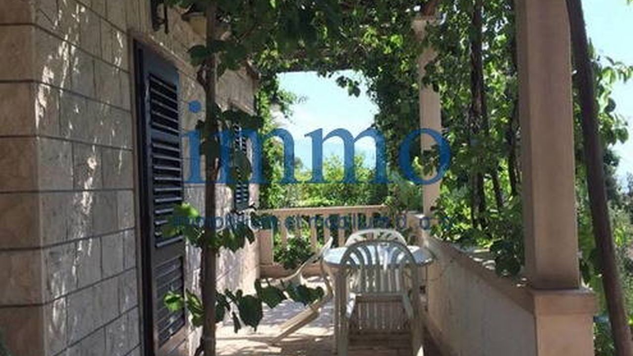 Продается трехэтажный дом площадью 336 м2, расположенный в прекрасном месте в поселке Сумартин, всего в 50 м от моря. Он расположен на земельном участке площадью 850 м2 и имеет прекрасный вид на море. Первый этаж состоит из гаража на три машины, складского помещения, винного погреба и двух туалетов. На втором этаже расположены два апартамента площадью 37 м2 и 46 м2. Каждый апартамент состоит из двух спален, ванной комнаты, кухни и гостиной. На третьем этаже находится просторный апартамент площадью 120 м2, который состоит из трех спален, двух ванных комнат, кладовой, кухни, столовой и гостиной. Дом имеет три террасы (30 м2, 40 м2 и 50 м2), на одной из которых находится каменный камин-барбекю. Рядом с домом находится оливковая роща площадью 650 м2, которая включена в стоимость.