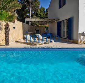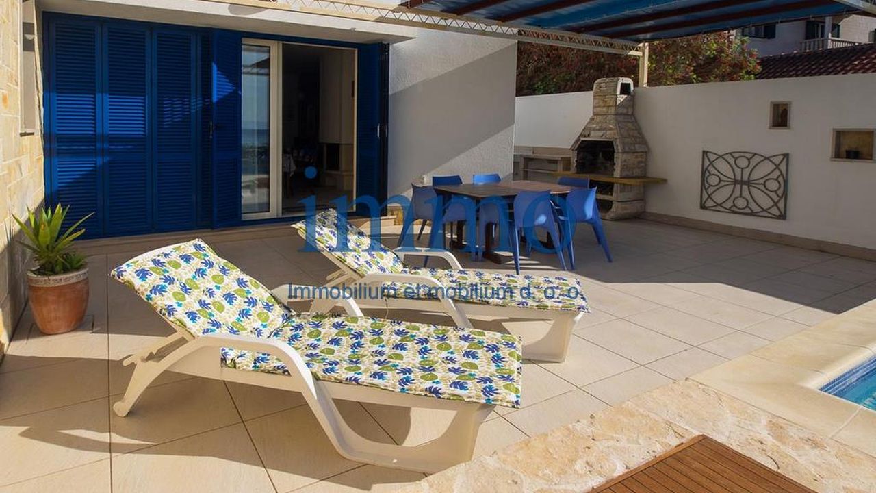 Продается красивый двухэтажный дом площадью 192 м2, расположенный на привлекательном побережье на северной стороне острова Брач. Дом состоит из двух двухэтажных квартир (94 м2 и 98 м2) аналогичной планировки. На нижнем этаже расположены гостиная с кухней и столовой и туалет, а на верхнем этаже находится главная спальня с ванной комнатой и лоджией, а также небольшая спальня и дополнительная ванная комната. Больная квартира имеет еще одну лоджию. Дом полностью меблирован и оборудован и обеспечивает мир и уединение. Дом окружен ухоженным участком на котором расположены два бассейна, солнечные террасы, гриль-барбекю и паркинг.