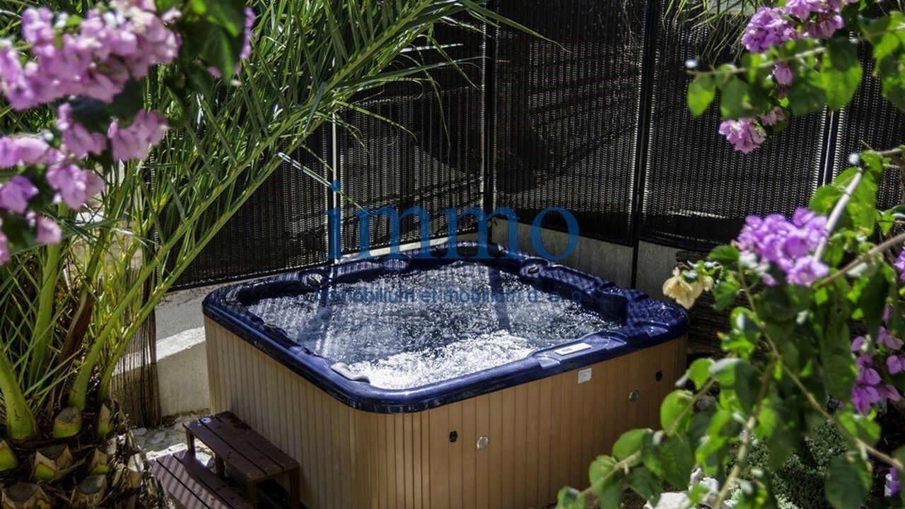 Дом окружен ухоженным участком, содержащим джакузи на шесть человек, барбекю и паркинг для трех автомобилей.