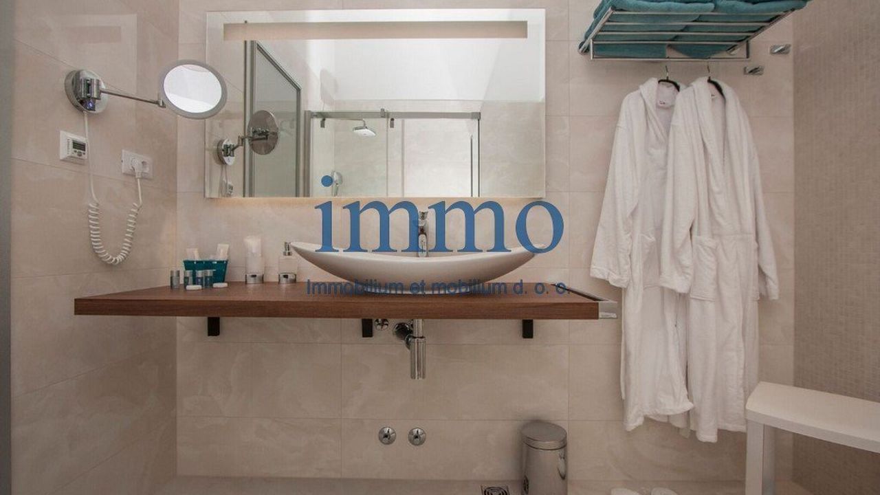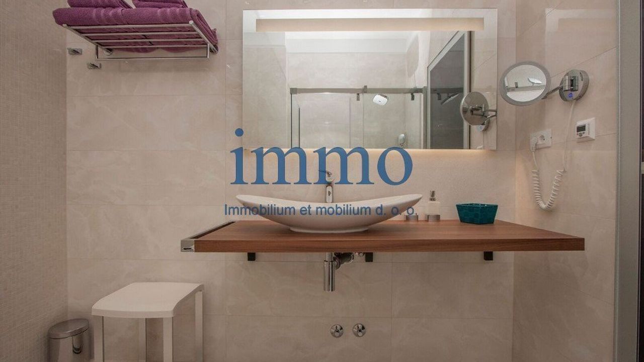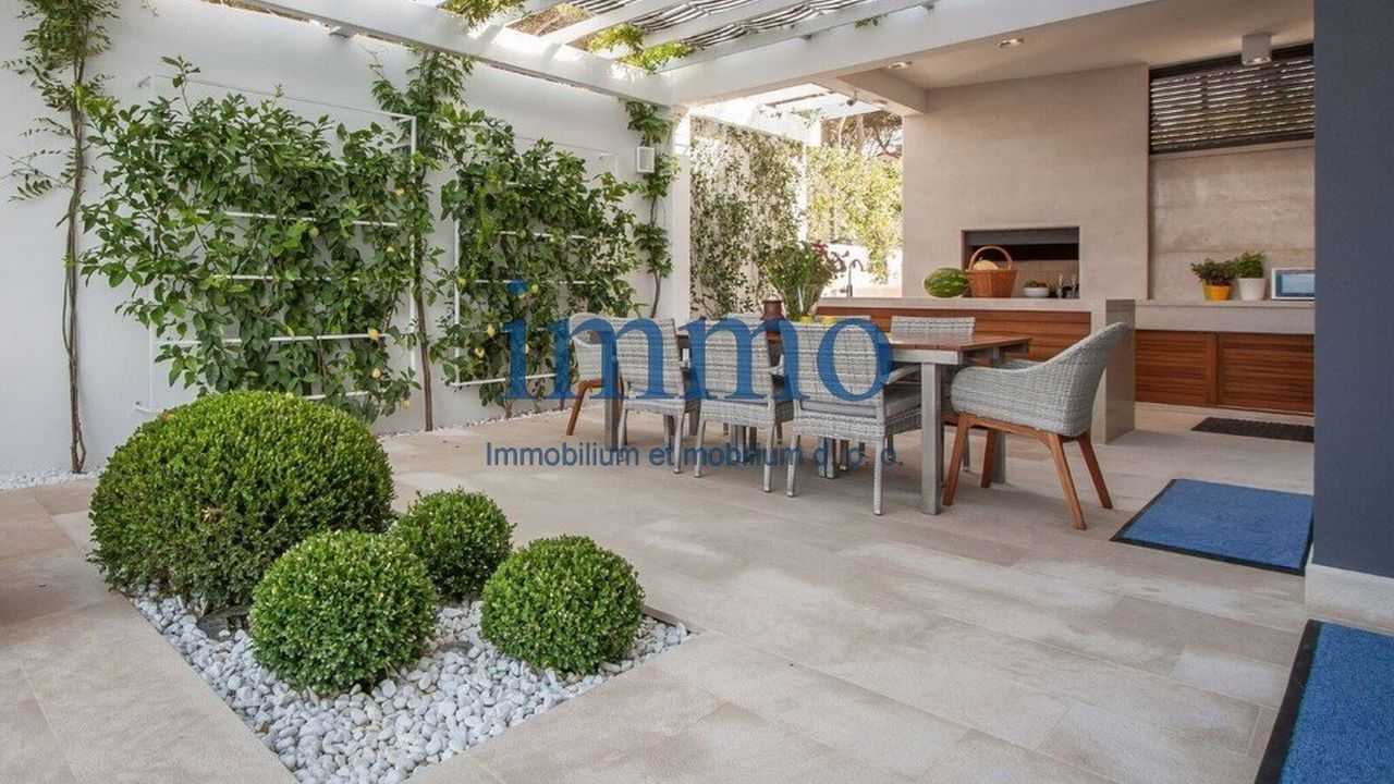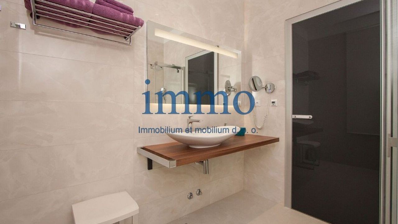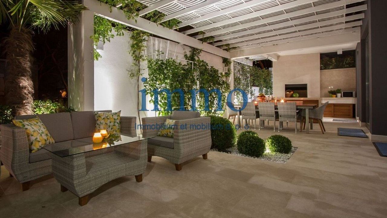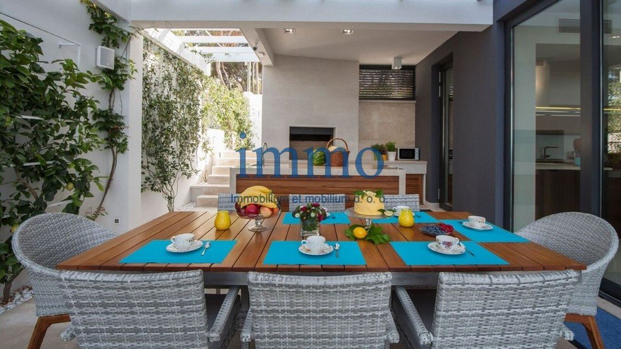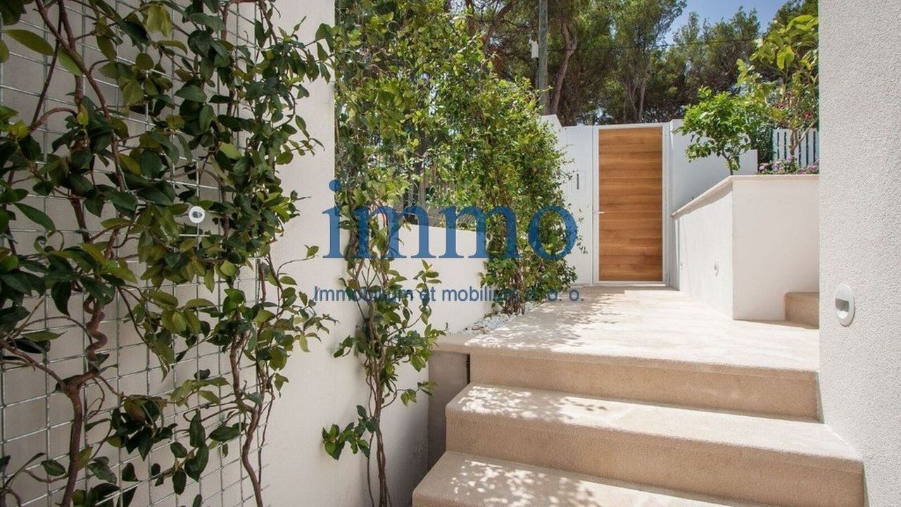 В цокольном этаже находятся тренажерный зал, сауна, кладовая и туалет. Первый этаж состоит из гостиной, кухни со столовой, спальни с ванной комнатой и гостевого туалета. Гостиная имеет выход на просторную террасу с бассейном, летней кухней, открытым камином и обеденной зоной. На втором находятся две спальни с ванными комнатами. Обе комнаты имеют балкон с прекрасным видом на море. Вилла полностью меблирована и роскошно оборудована. Двор красиво оформлен и ухожен имеет сад, душ на открытом воздухе и паркинг для трех автомобилей.