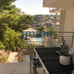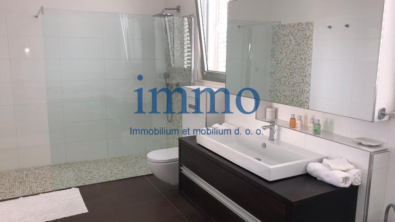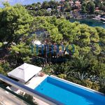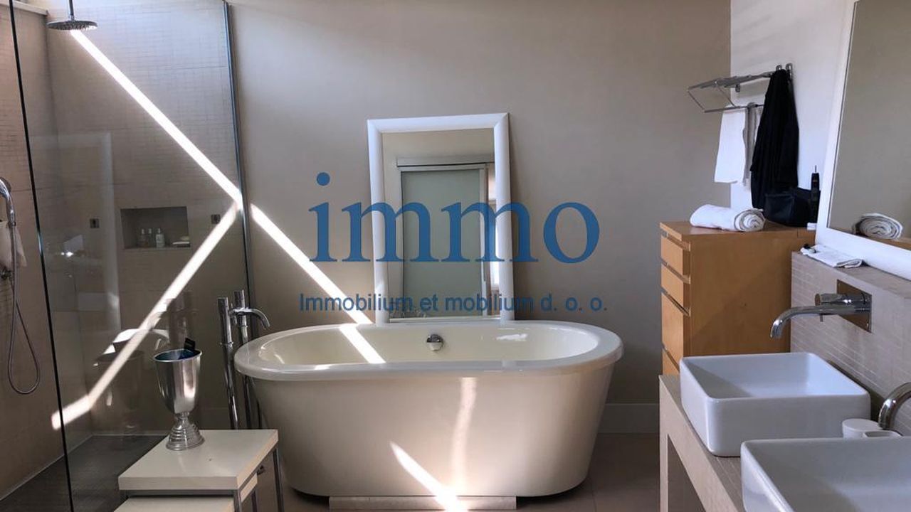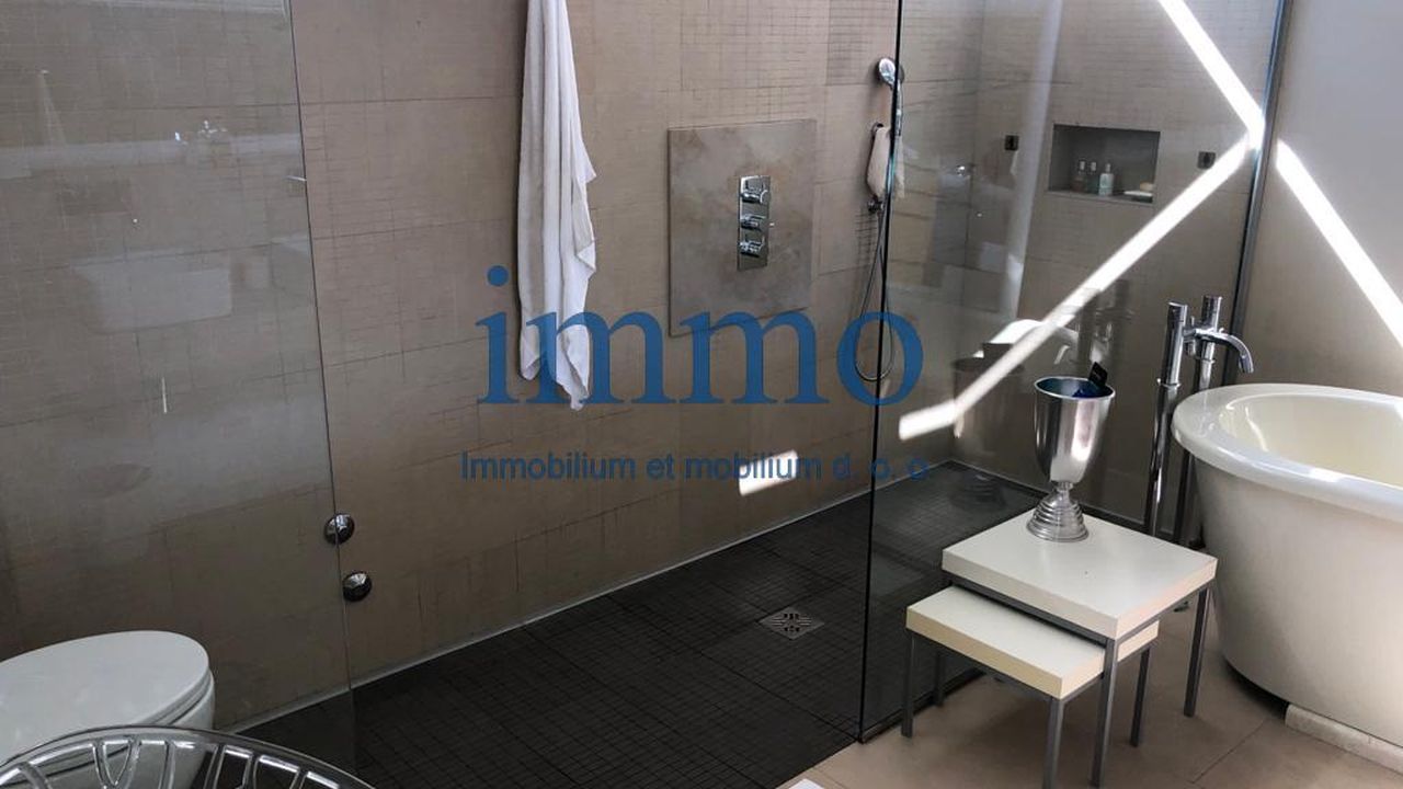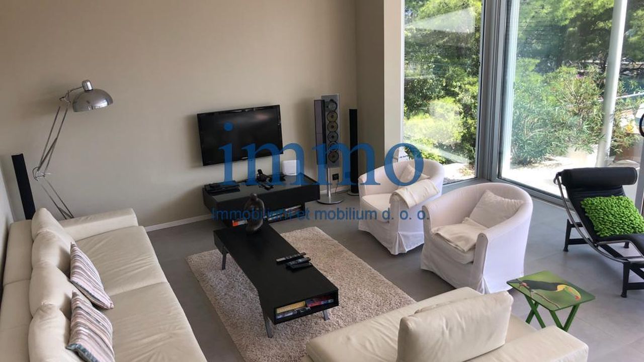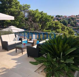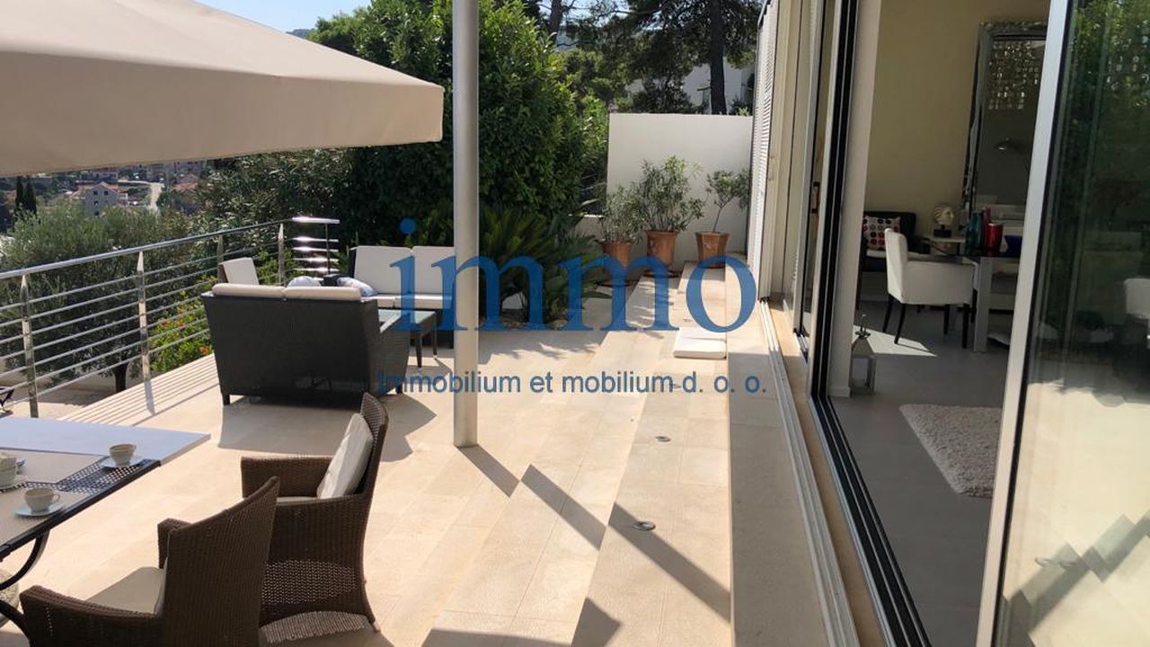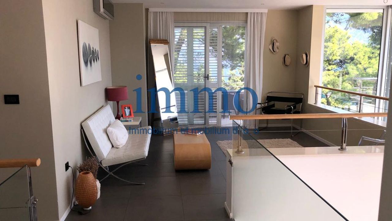 Продается роскошная трехэтажная вилла, расположенная возле моря в небольшом приморском городке на северной стороне острова Брач. Вилла находится на возвышении в 50 м от моря и располагает захватывающим открытым видом на море и поселок. Вилла была построена в 2006 году, а в 2019 году был полностью обновлен фасад здания. Главный вход в виллу находится на среднем этаже, который состоит из прихожей, гардероба, небольшой гостиной, главной спальни с гардеробом, большой ванной комнаты и выходом на крытую террасу и еще одной спальни с гардеробом, ванной комнатой и террасой. На нижнем этаже расположены гараж для двух автомобилей, просторная гостиная открытого типа с кухней и столовой, туалет и апартамент для гостей, состоящий из гостиной, спальни и ванной комнаты. Гостевой апартамент имеет вход как изнутри, так и снаружи здания. Гостиная имеет стеклянные раздвижные стены с выходом на прекрасную террасу с видом на море, под которой находится небольшое помещение (ок. 7 м2) с тренажерами и туалетом на, а со стороны кухни есть еще одна небольшая терраса с грилем. Кухня также имеет и техническое помещение (кладовая/прачечная). Верхний этаж состоит из прихожей с выходом на просторную (ок. 40 м2), частично крытую террасу, детской, спальни с двумя балконами, еще одной спальни с выходом на террасу и ванной комнаты.