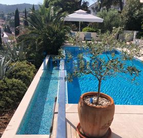 Все этажи виллы связаны внутренними ступенями, а помещения располагают роскошными видами на море и окрестности. Перед виллой находится просторная терраса с бассейном (32 м2) и зоной для загара.