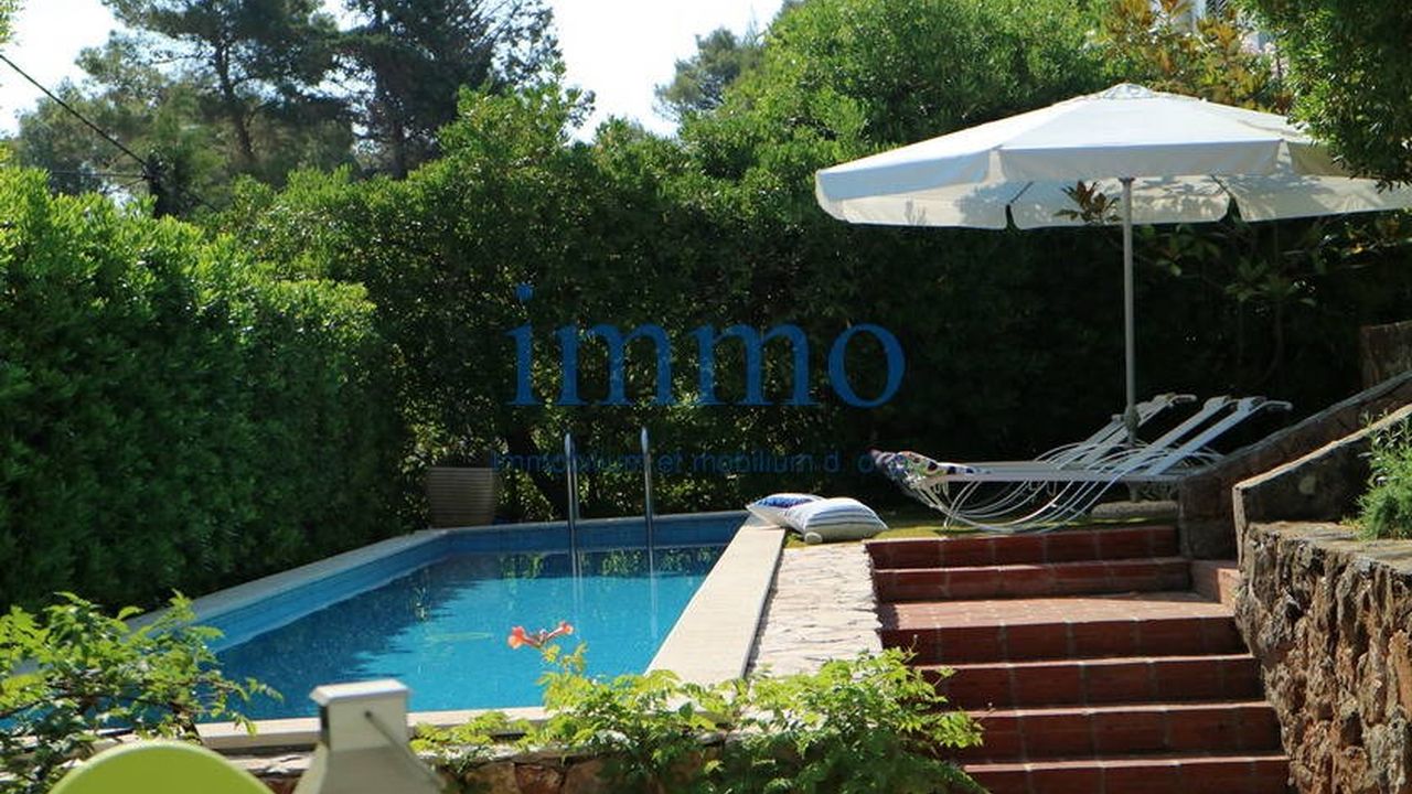 На ухоженном участке находится средиземноморский сад, бассейн и площадка для барбекю.