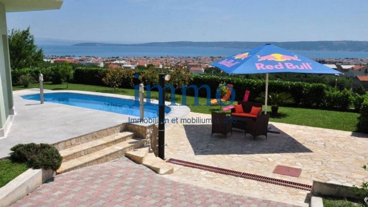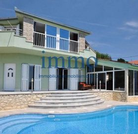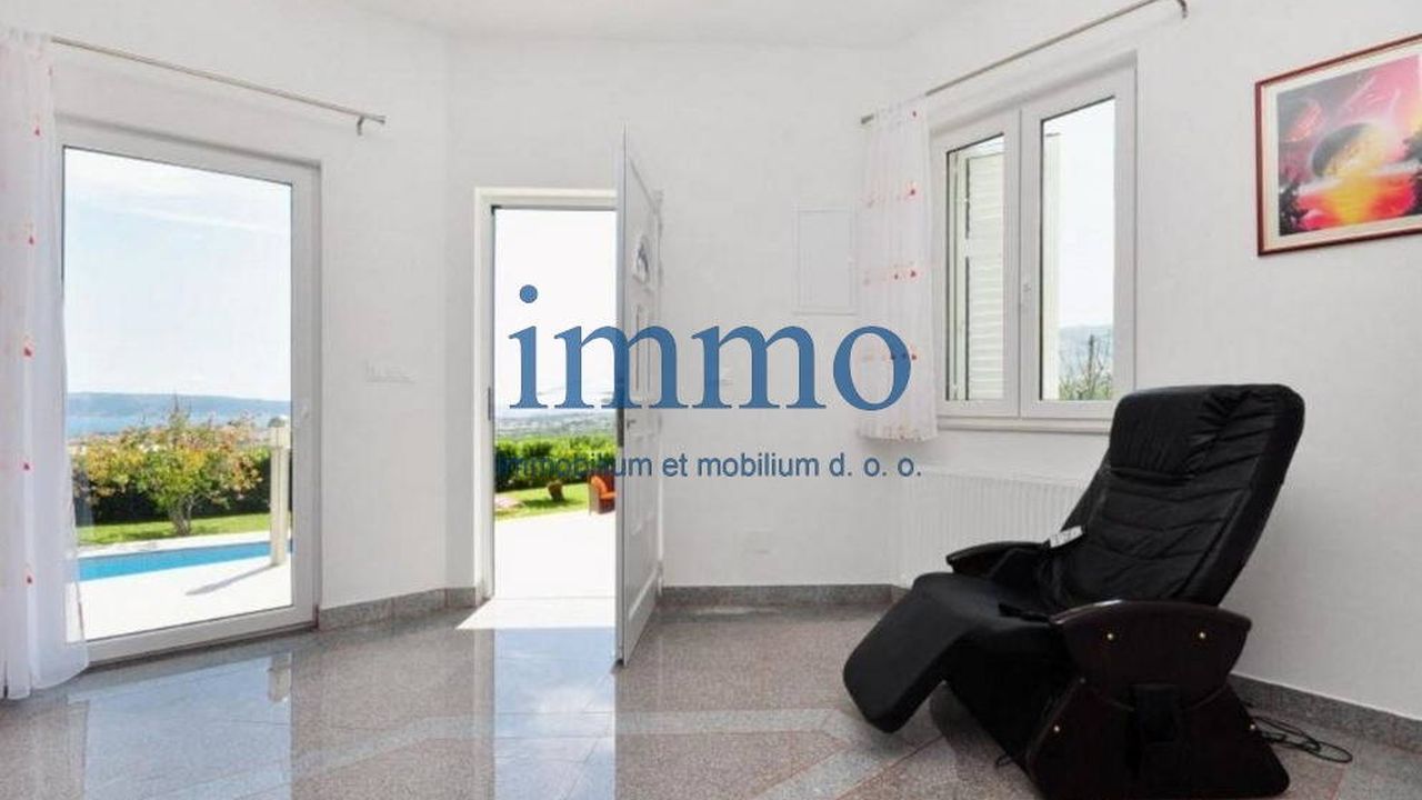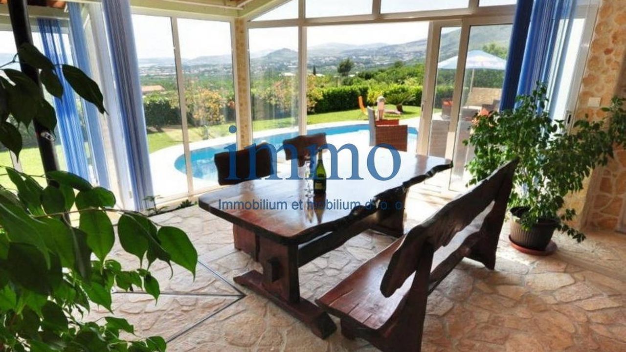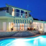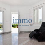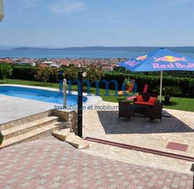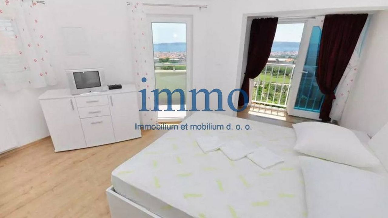 Продается красивая вилла 400 м2, расположенная на участке 3800 м2 в тихом месте в Каштела. Вилла расположена на холме и предлагает фантастические панорамные виды. Вилла состоит из двух частей, соединенных между собой галереей с зимним садом площадью 100 м2. Первая часть виллы площадью 130 м2 занимает два этажа. Первый этаж состоит из просторной гостиной, столовой, кухни и ванной комнаты. Гостиная выходит на террасу с бассейном 40 м2. На втором этаже находятся две спальни, две ванные комнаты и балконы. Вторая часть виллы площадью 150 м2 состоит из двух этажей. На первом этаже находятся спальня с ванной комнатой, гостевая ванная комната, гостиная, кухня и терраса, а наверху две спальни, ванная комната и балконы. Вилла полностью меблирована и хорошо оборудована и окружена участком с барбекю, оливковой рощей, садом и паркингом.