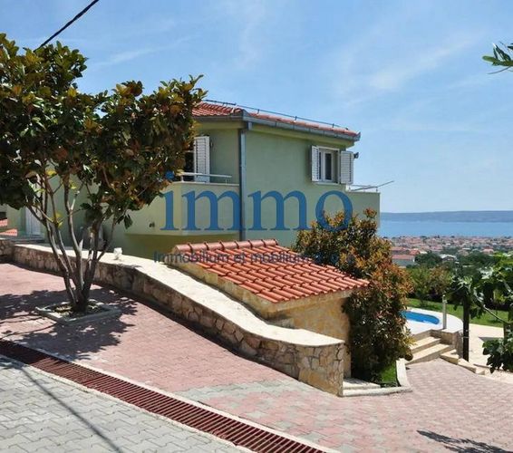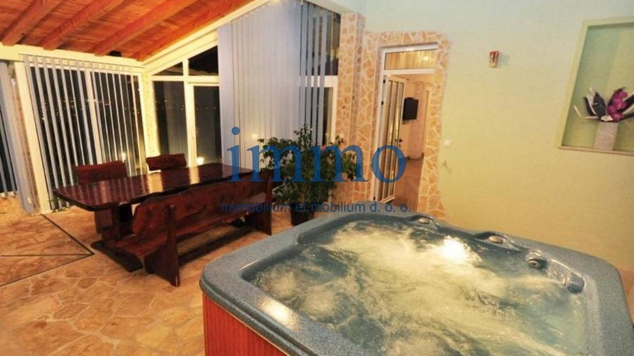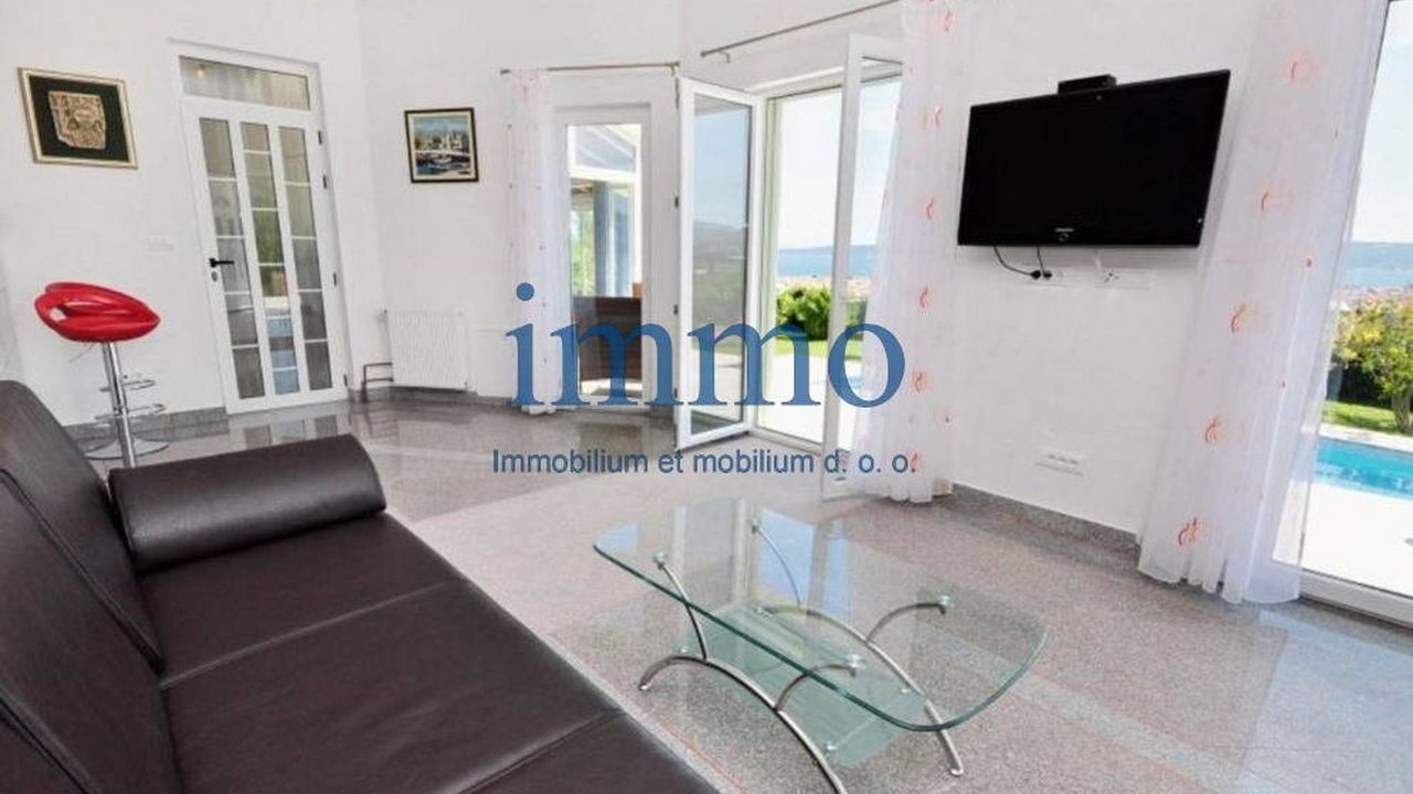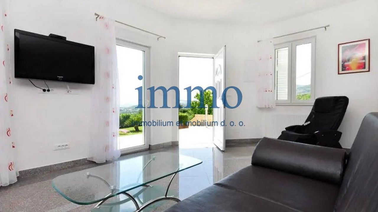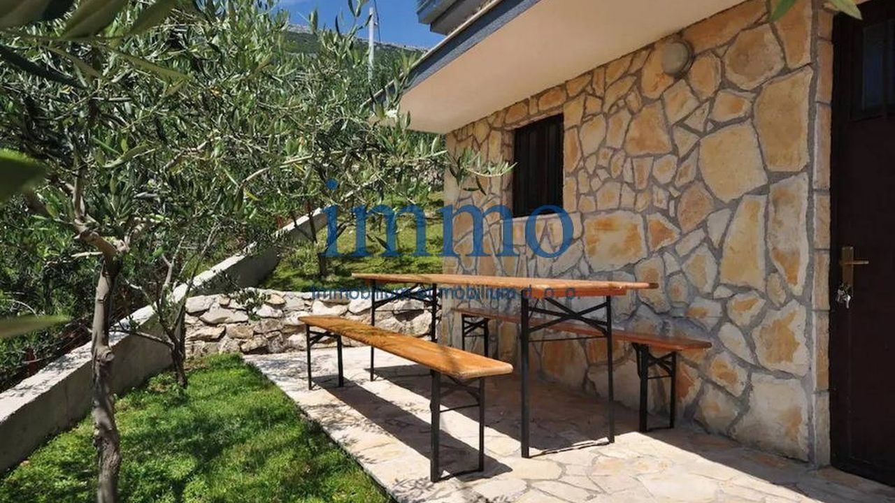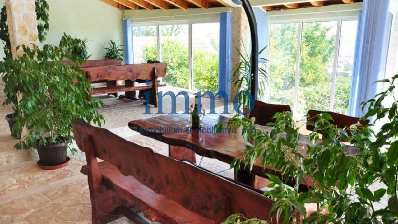 Продается красивая вилла 400 м2, расположенная на участке 3800 м2 в тихом месте в Каштела. Вилла расположена на холме и предлагает фантастические панорамные виды. Вилла состоит из двух частей, соединенных между собой галереей с зимним садом площадью 100 м2. Первая часть виллы площадью 130 м2 занимает два этажа. Первый этаж состоит из просторной гостиной, столовой, кухни и ванной комнаты. Гостиная выходит на террасу с бассейном 40 м2. На втором этаже находятся две спальни, две ванные комнаты и балконы. Вторая часть виллы площадью 150 м2 состоит из двух этажей. На первом этаже находятся спальня с ванной комнатой, гостевая ванная комната, гостиная, кухня и терраса, а наверху две спальни, ванная комната и балконы. Вилла полностью меблирована и хорошо оборудована и окружена участком с барбекю, оливковой рощей, садом и паркингом.
