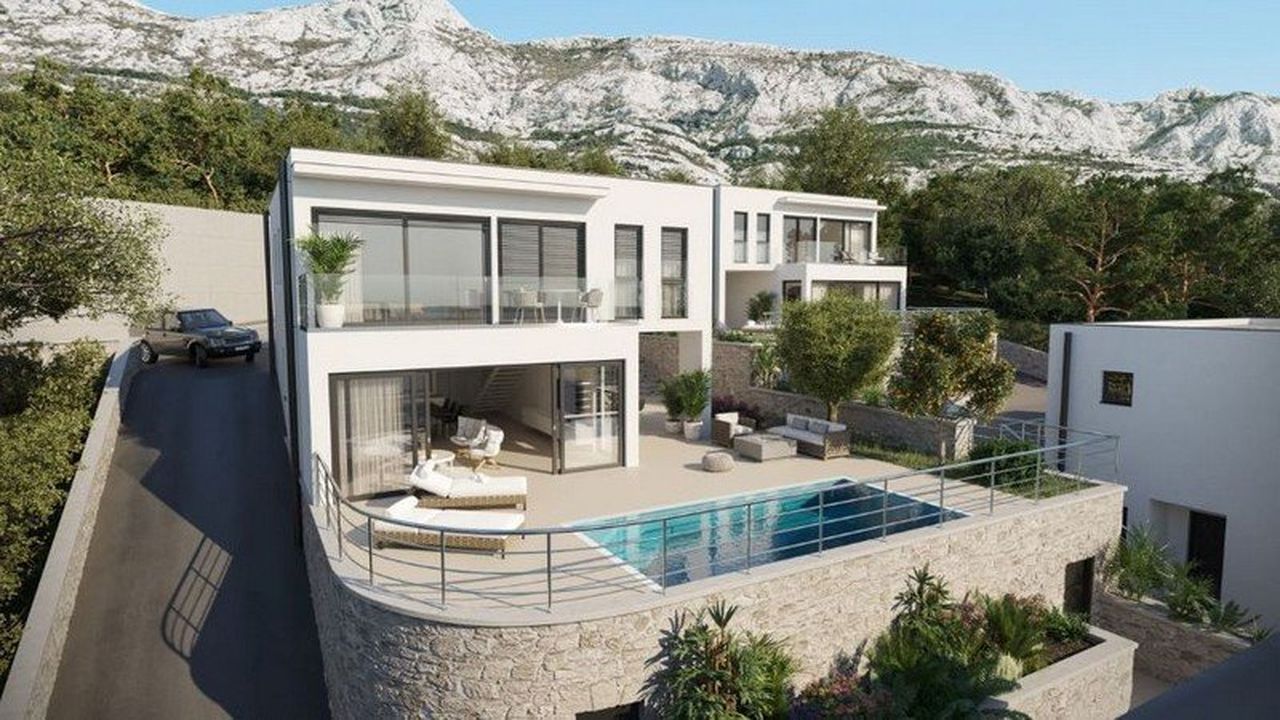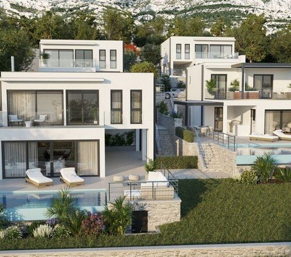 Exclusive, modern, seaside villas with their private swimming pools, situated in the centre of Makarska Riviera, in the town of Makarska -“Veliko Brdo“, with a guaranteed view of Adriatic sea and surrounding islands Brac and Hvar, only 1 km away from the main beach area.