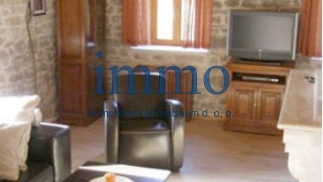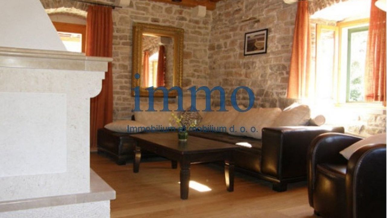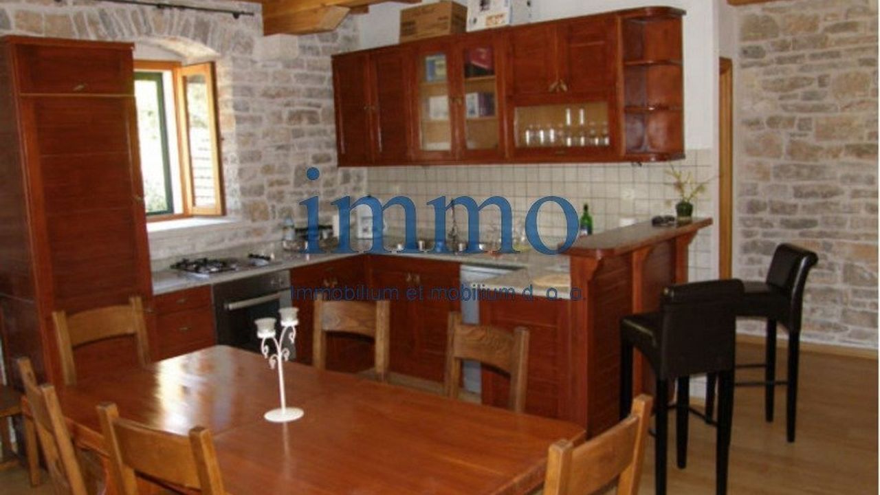 Продается традиционный далматинский дом 180 м2, расположенный в тихом месте недалеко от поселка Стоморска, всего в 200 м от моря. Дом расположен на участке 600 м2 и имеет три этажа. Первый этаж состоит из апартамента, состоящего из спальни, ванной комнаты, кухни со столовой и большой гостиной с камином и террасой. На втором этаже находится кухня со столовой и гостиной, ванная комната и главная терраса с барбекю и бассейном площадью 24 м2, а на третьем этаже находится главная спальня с прилегающей ванной комнатой, две дополнительные спальни и еще одна ванная комната. Дом был отремонтирован в 2010 году и полностью меблирован и оборудован. Он окружен красивым ухоженным участком и имеет частный паркинг.