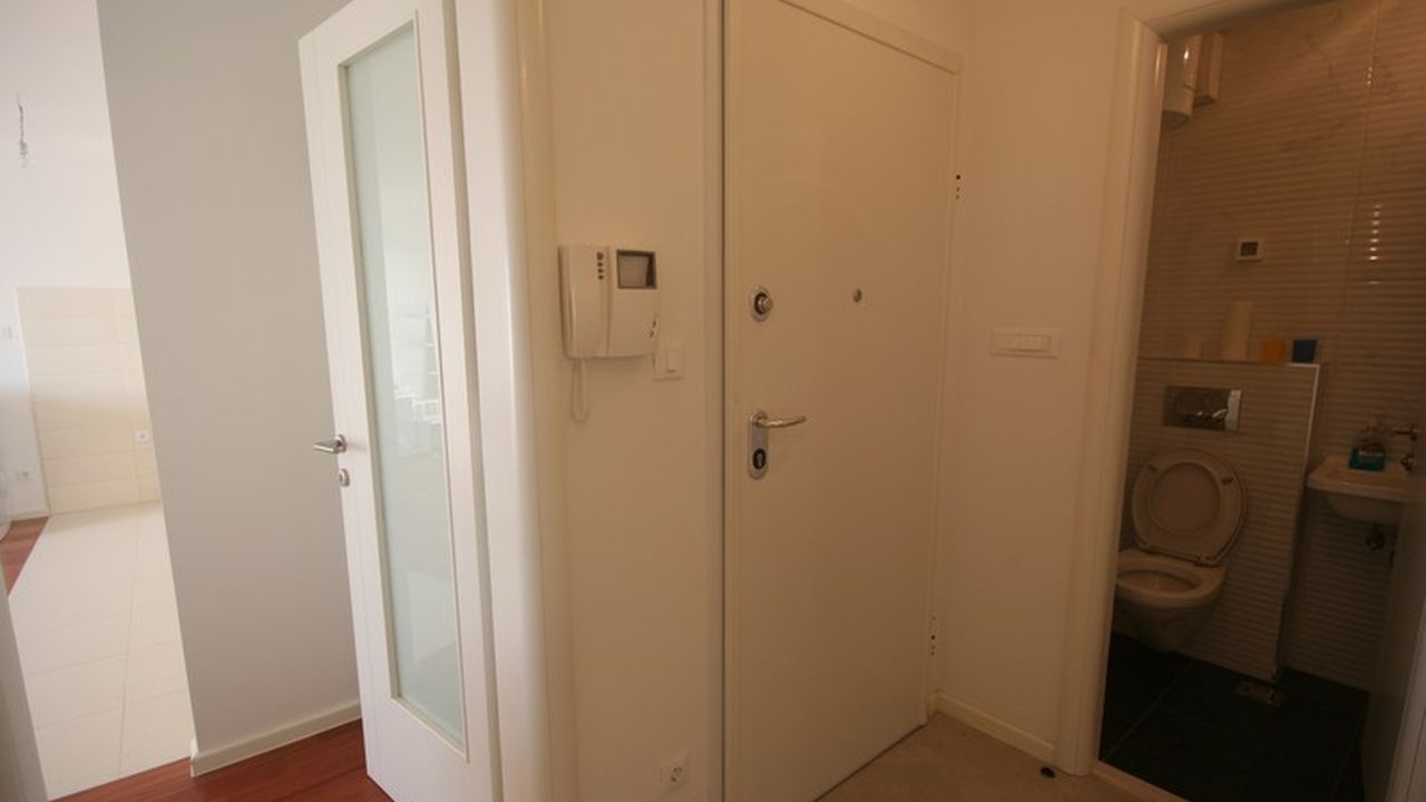 Площадь квартиры 98.46м2. Квартира находится на втором этаже и состоит из кухни со столовой, гостиной, трех спальных комнат и двух ванных комнат. На южной стороне квартиры находится большая покрытая терраса 28м2 с видом на море.