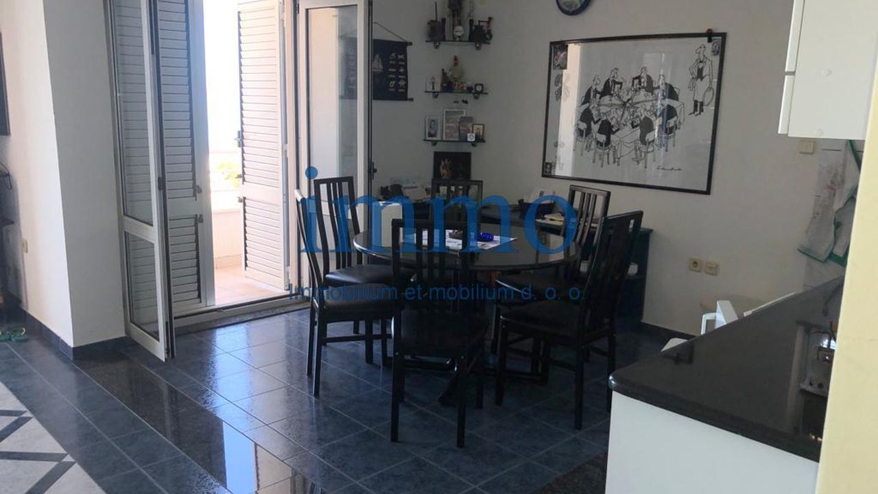 Продается двухкомнатная квартира, расположенная на прекрасной локации, в районе Жнян. Квартира находится на высоком первом этаже жилого здания в первой линии моря и состоит из прихожей, гостиной открытого типа с кухней и столовой, спальни и ванной комнаты. В прихожей оборудован встроенный шкаф. Все помещения имеют выходы на балконы, с которых открывается прекрасный вид на море, острова и окрестности. Квартира имела две спальни и за счет одной спальни было увеличено пространство гостиной, поэтому возможно, при небольшом вложении, вернуть первоначальную планировку. Квартира имеет паркинг для одного автомобиля.