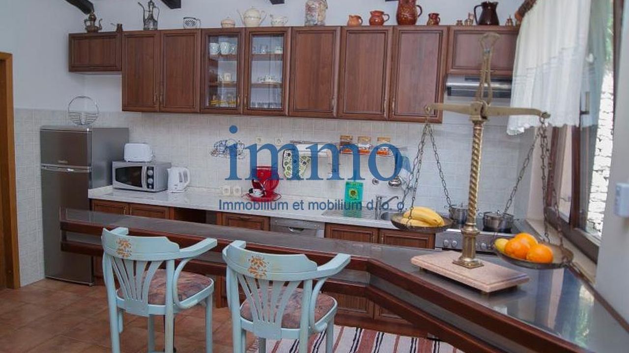 Продаем красивый дом с видом на море, расположенный в южной части Сплита. Дом полностью меблирован, оборудован и состоит из гостиной, кухни со столовой, двух спален, двух ванных комнат и помещения (30 м2) для тренинга. Дом окружен ухоженным участком со средиземноморским садом, двумя удобными террасами, площадкой для барбекю и бассейном (12 м х 5,5 м). На участке также находится паркинг для нескольких автомобилей.