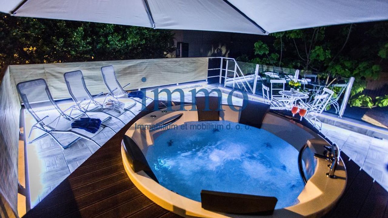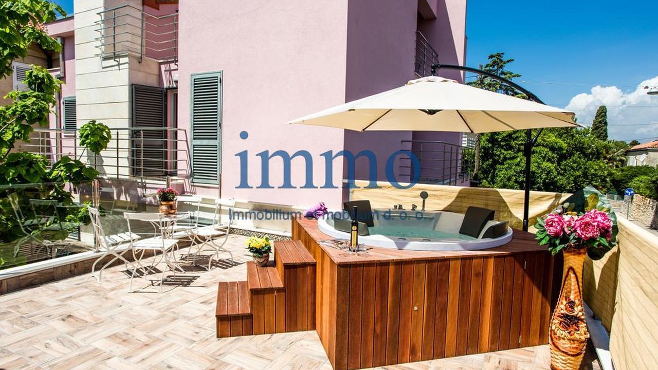 Продается прекрасная вилла, расположенная в одном из резиденциальных районов Сплита, недалеко от центра и в 200 м от моря. Вилла расположена на участке 360 м2 и состоит из подвала, двух этажей и мансарды. В подвале здания находится традиционная далматинская таверна с камином и бильярдом. На первом этаже находится гостиная с камином и кухня со столовой. Из гостиной есть выход на террасу с грилем, обеденной зоной на открытом воздухе и внешнем душем. Внешние ступени ведут на верхнюю террасу с большим джакузи, зоной для загара и видом на море. На втором этаже расположены прихожая и три спальни с ванными комнатами и балконами. В мансарде здания находится апартамент с балконом для гостей, состоящий из небольшой гостиной, спальни и ванной комнаты.
