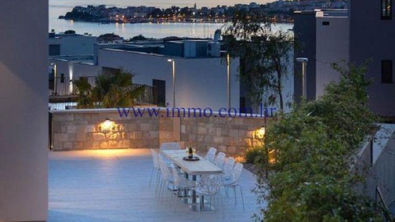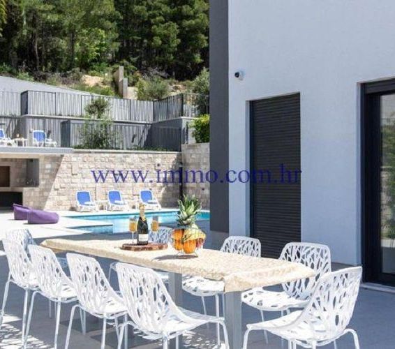 Продается недавно построенная вилла с современной архитектурой, расположенная недалеко от Сплита. Вилла сделана каскадно, и расположена на нежном склоне, который дает ему красивый вид на море и окружающую область. Вилла имеет три этажа, соединенные внутренней лестницей. Первый этаж имеет просторную гостиную с кухней и обеденной зоной, шкафом, дополнительное хранение, гостевой туалет и просторную крытая терраса с видом на море. Первый этаж включает четыре комфортабельных спальни с ванными комнатами и две гардеробные комнаты. На верхнем этаже виллы есть туалет, кладовка и большая гостиная с множеством дневного света, откуда вы выезжаете на крытая терраса 22 м2, а также доступ к открытой террасе 37 м2. Оба предлагают панорамные виды на море и окрестности. В подвале виллы есть гараж и хранение. Городской сад хорошо поддерживается, в то время как средиземноморские растения посадят в саду. Кроме того, в саду также есть открытый камин, бассейн с солнечной палубой и открытый душ и открытая открытая парковка. Качественные материалы были использованы в конструкции, заботясь о том, что вилла вписывается в окружающую среду. Дом полностью кондиционирован, слаженно оборудован современной мебелью и новой техникой. Он обеспечивает своего будущего владельца с комфортом, полной конфиденциальностью, наслаждаясь удивительными видами на море, острова и закат.