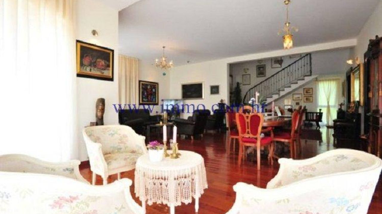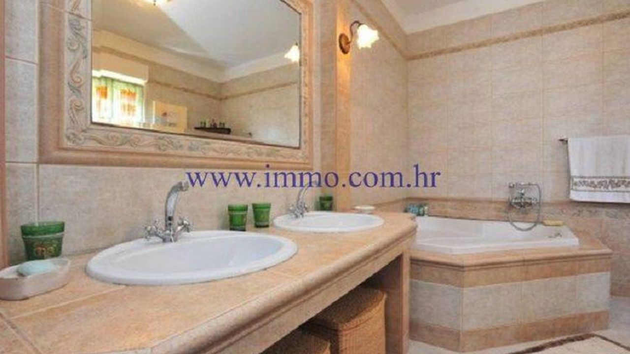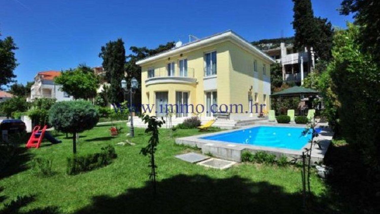 Красивая двухэтажная вилла площадью 250 м2, расположенная в тихой и жилой части города Сплита, всего в 200 метрах от моря. Вилла расположена на участке площадью 600 м2 и имеет частичный вид на море. Первый этаж имеет гостиную с кухней и обеденной зоной, шкафом и ванной комнатой. Из столовой вы входите на крытая терраса с барбекю. На первом этаже есть четыре спальни и ванная комната. Две спальни имеют доступ к общей террасе с прекрасными открытыми видами на море и окрестность. Вилла имеет подвал 20 м2 с отдельным входом, где можно оборудовать пространство для релаксации и упражнений с сауной или таверной. Вилла окружена ландшафтным садом с бассейном площадью 30 м2, солнечной палубой и парковкой на 3-4 машины.
