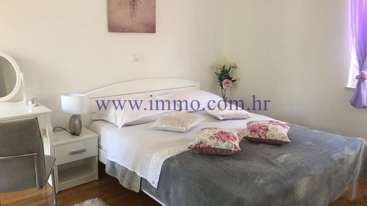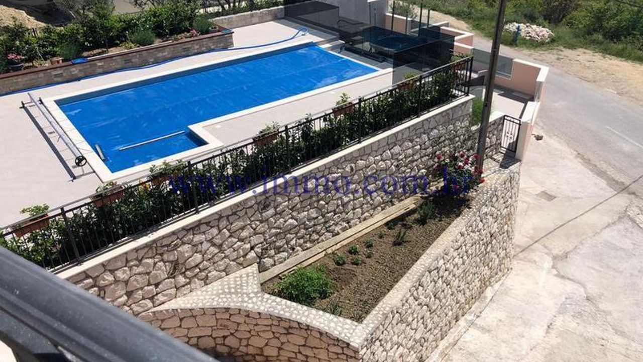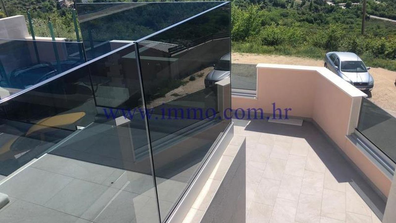 Продается красивый дом, расположенный на холме в одном из самых красивых частей Далмации, откуда открывается бесконечный и красивый вид на море и острова. Этот роскошный дом окружен красивой природой и оснащен всеми удобствами. На первом этаже, 140 м2, есть гараж (83.7 м2,) подвал (14.7 м2,) туалет, кладовая и котельная. Внешние лестницы ведут на первый этаж, в котором есть двухкомнатная квартира, 127 м2. Квартира состоит из прихожей, гостиной с камином, кухни и столовой, спальни с ванной комнатой и балконом, другой спальни с балконом и ванной комнатой. В гостиной есть доступ к просторной террасе с незабываемым панорамным видом на море и окружающую среду. Внутренние лестницы ведут на второй этаж, где есть двухкомнатная квартира той же планировки и с прекрасным видом.