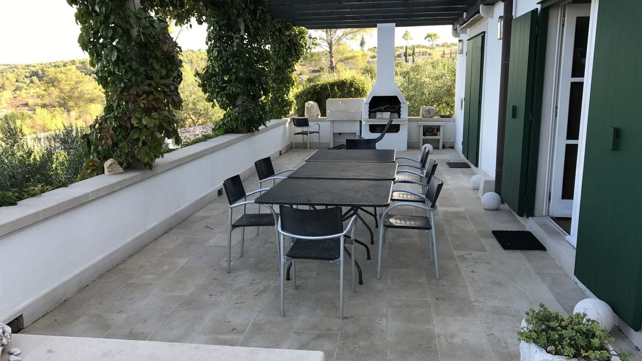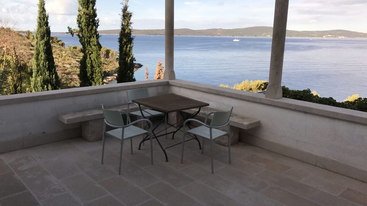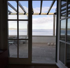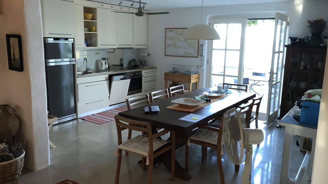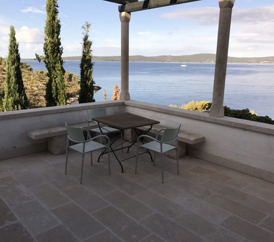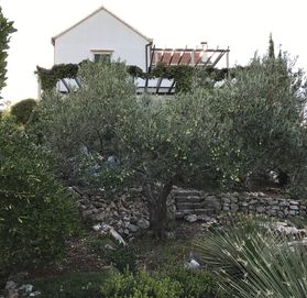 Окружен замечательным садом с оливковыми деревьями площадью 3000 м2, который спускается к морю.