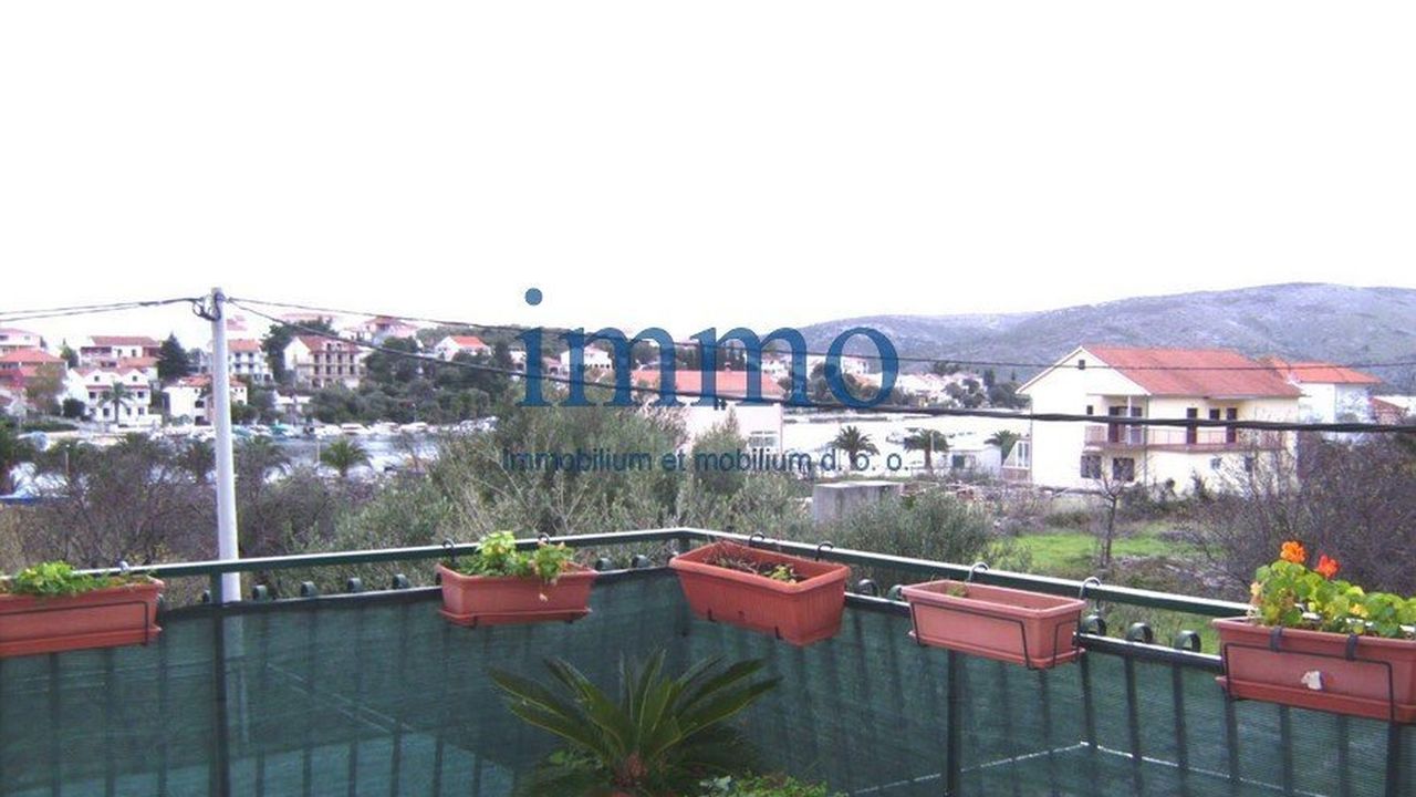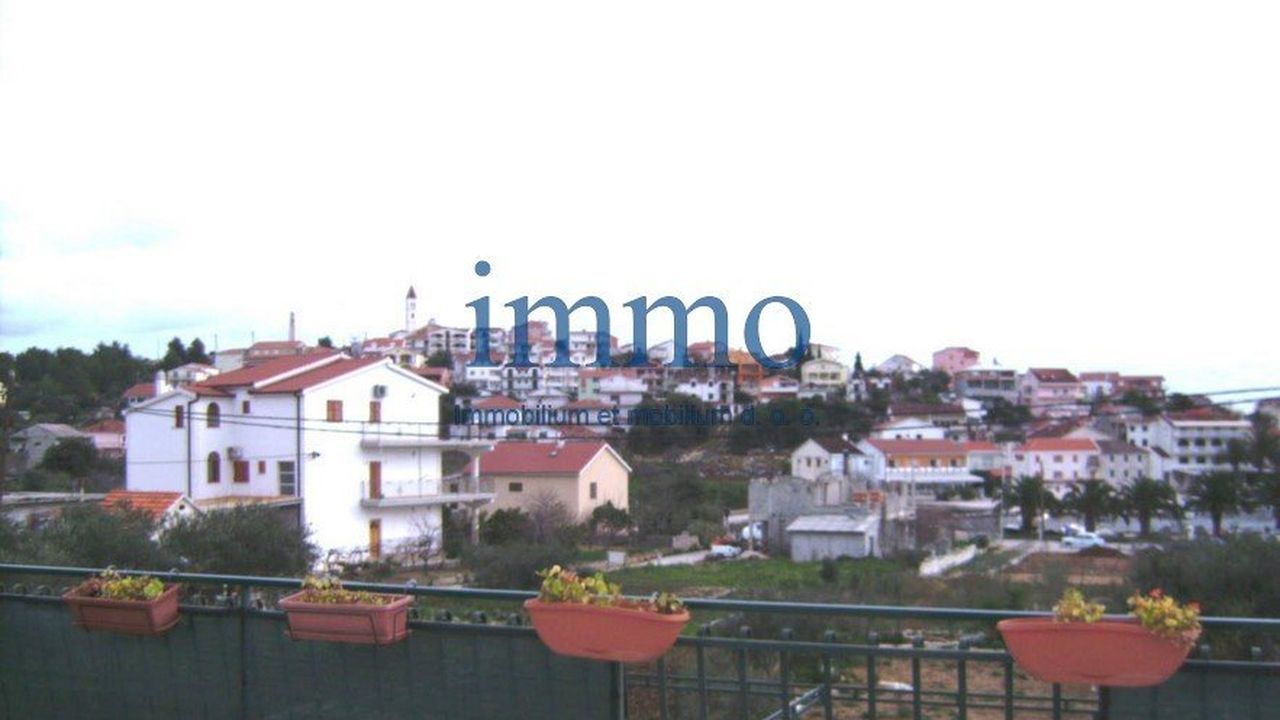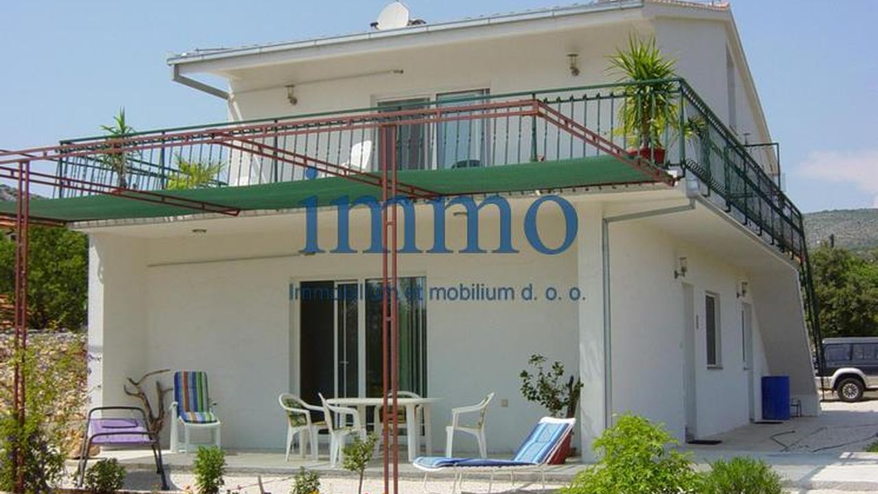 Продается дом в очаровательном приморском поселке недалеко от Трогира. Дом расположен на просторном участке между главной дорогой и морем в 200 м от пляжа и имеет открытый панорамный вид на море. Здание имеет два этажа, на каждом из которых находится по одной квартире. Квартира на первом этаже имеет площадь 60 м2 и состоит из гостиной южной ориентации, кухни со столовой, двух спален и ванной комнаты. Из гостиной есть выход на террасу и сад. Квартира на втором этаже имеет площадь 90 м2, имеет просторную прихожую, гостиную, кухню со столовой, санузел, ванную комнату, две спальни. Из одной спальни есть выход на балкон (14 м2), а вторая спальня в настоящее время используется как библиотека. Из гостиной выход ведет на террасу (32 м2) с великолепным панорамным видом на сад, море и поселок. Доступ к террасе возможен и с внешней стороны дома. На участке кроме сада еще находится гараж и отдельное помещение с котельной, прачечной и кладовой.