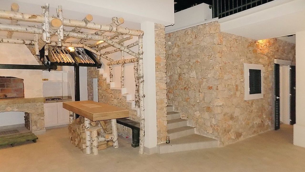 Bajna villa is equipped with 6 bedrooms, 3 living rooms, 5 kitchen, 6 bathrooms, boiler, solar heating, underfloor heating on the ground floor and a fireplace, air conditioning with each unit, parking on plot for 4 cars, swimming pool 10x5 m, outside shower and toilet, external summer kitchen with bar and gril