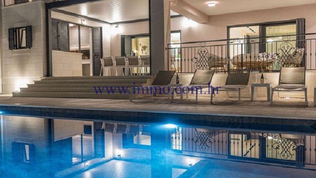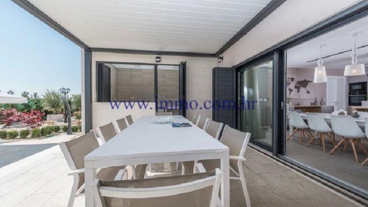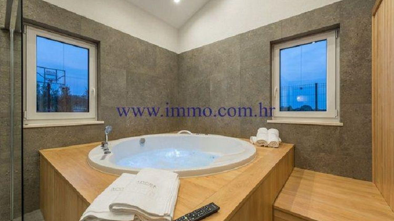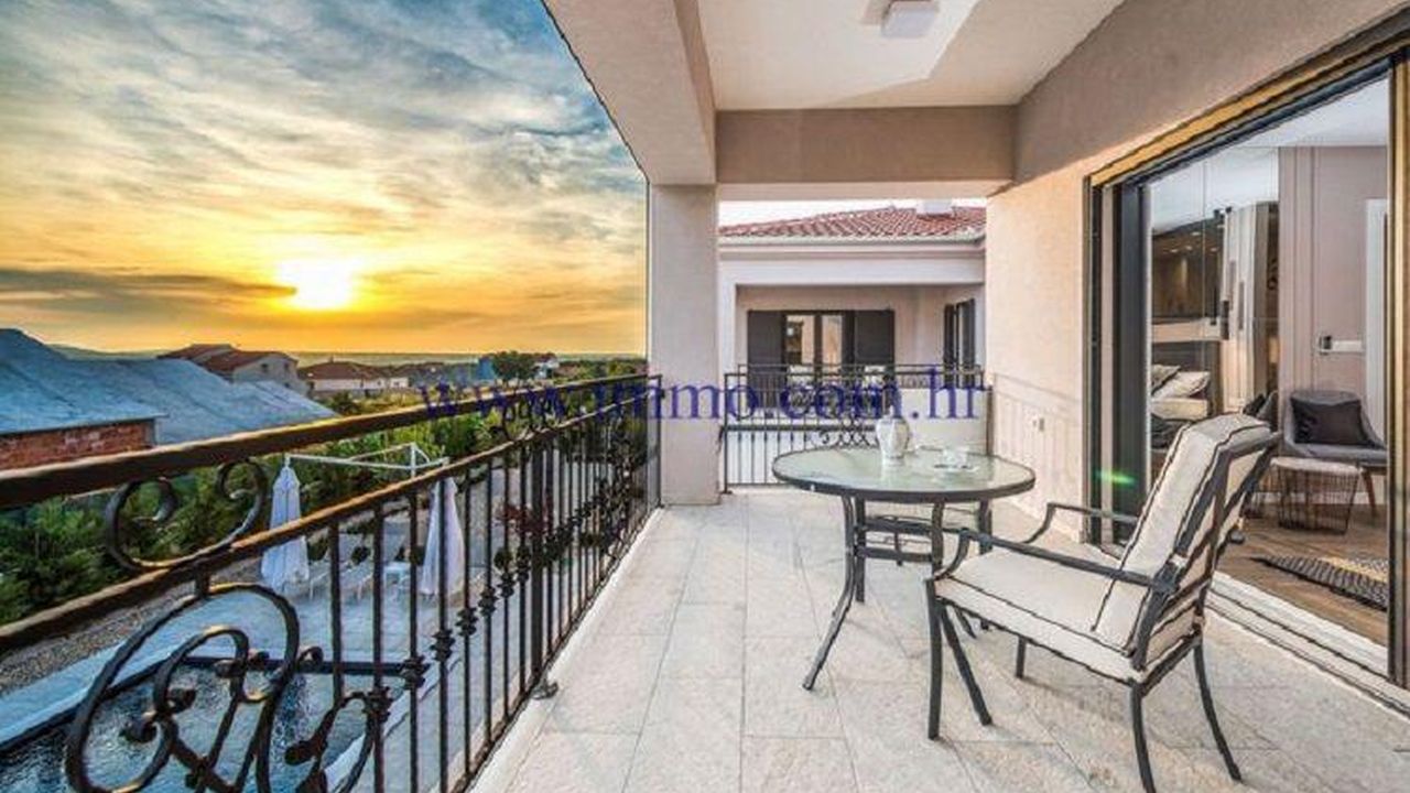 Красивая вилла на продажу, расположенная в тихом месте недалеко от Задара, всего в нескольких минутах езды от моря. Отличное расположение и современный дизайн делают эту виллу идеальным местом для отдыха и постоянного проживания. На первом этаже есть открытая кухня с столовой, гостиная с камином и развлекательная комната с бассейном, дартс, винный бар, большой ЖК-телевизор и кожаная мебель Chesterfield. Из гостиной и столовой, через раздвижные стеклянные стены, вы можете пойти непосредственно на крытую террасу с удобными креслами и ассоциированной летней кухней с большим грилью, газовой плитой, холодильником и раковиной. Вилла имеет пять спален, каждая с ванной комнатой, отдельным шкафом и ЖК-телевизором, прачечная, а также отдельную SPA-зону с финской сауной, джакузи на 6 человек и ванной комнатой. Огороженный двор включает в себя средиземноморский сад с детской игровой площадкой, просторную террасу с подогреванным бассейном, открытый баскетбольный корт и парковку, оборудованную быстрым зарядным устройством EV для электромобилей. Инфраструктура: проложенная дорога доступа, электричество, вода, септический бак. Дополнительная информация о объекте, его точное местоположение и осмотр достопримечательностей возможна после подписания брокерского соглашения с агентством, которое в соответствии с Законом о защите данных и Законом о брокерской недвижимости.