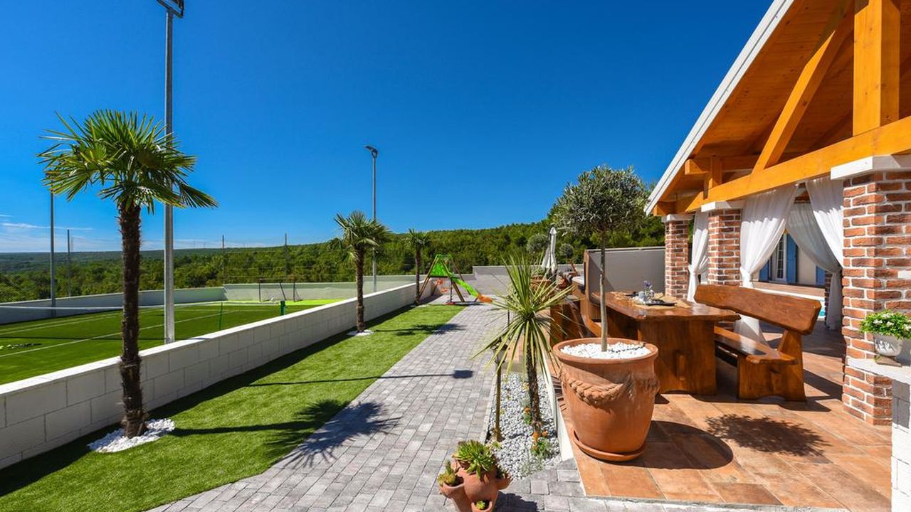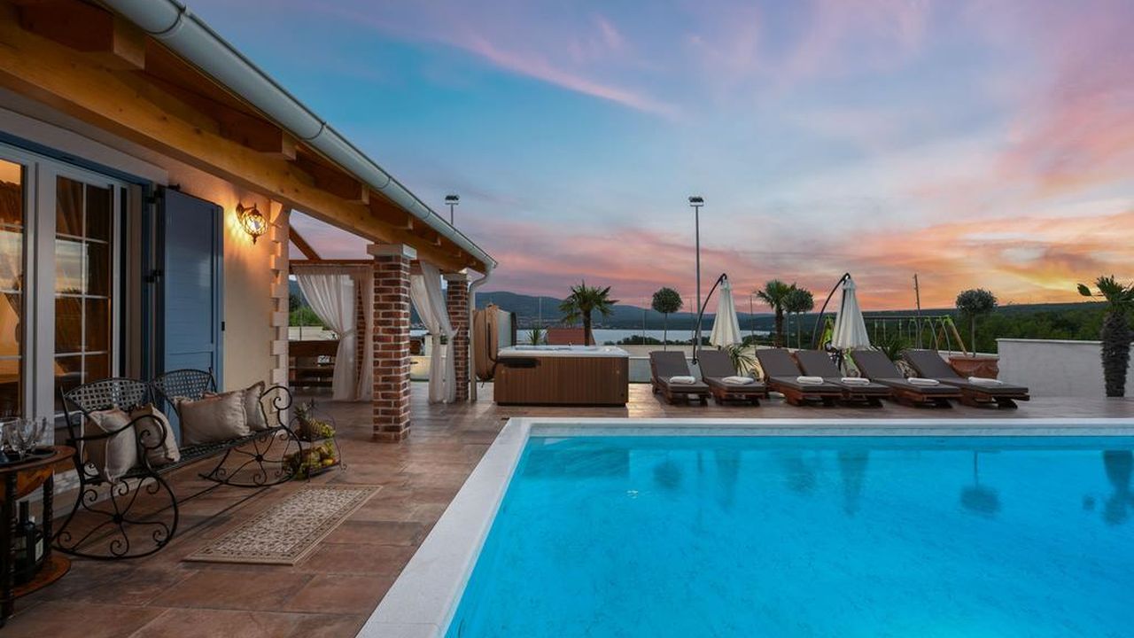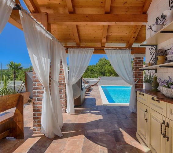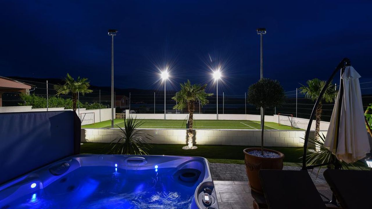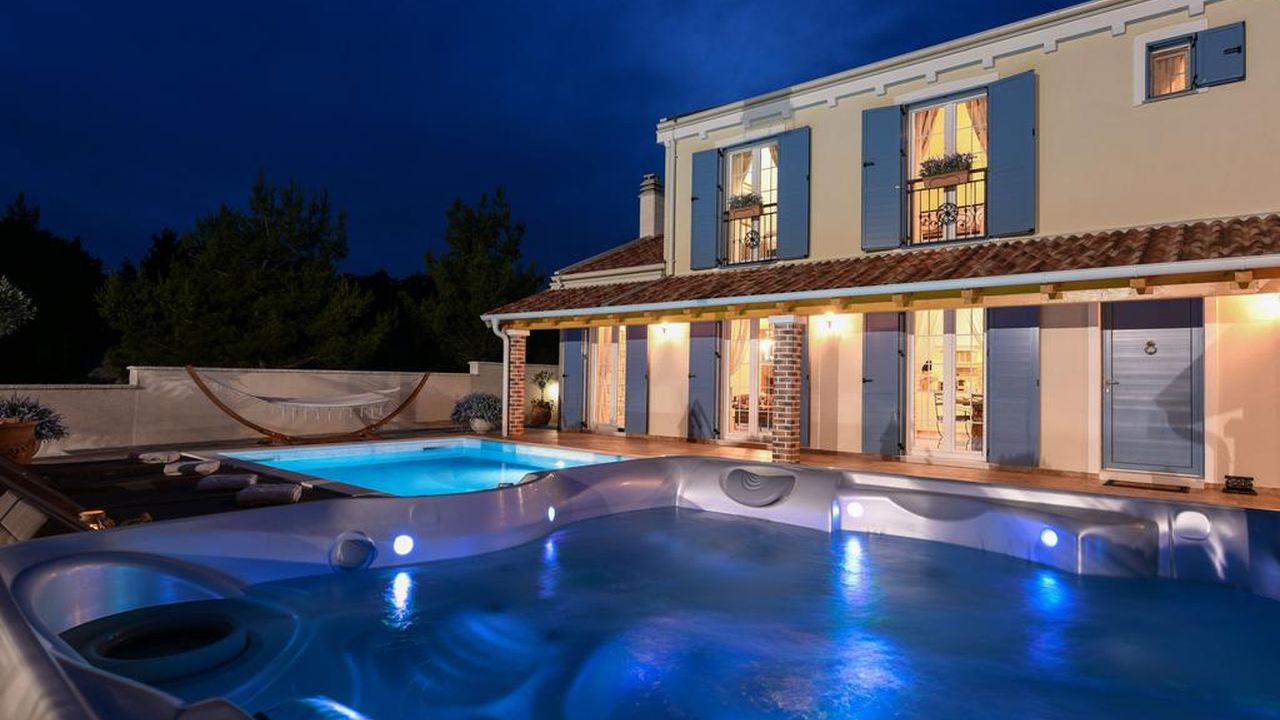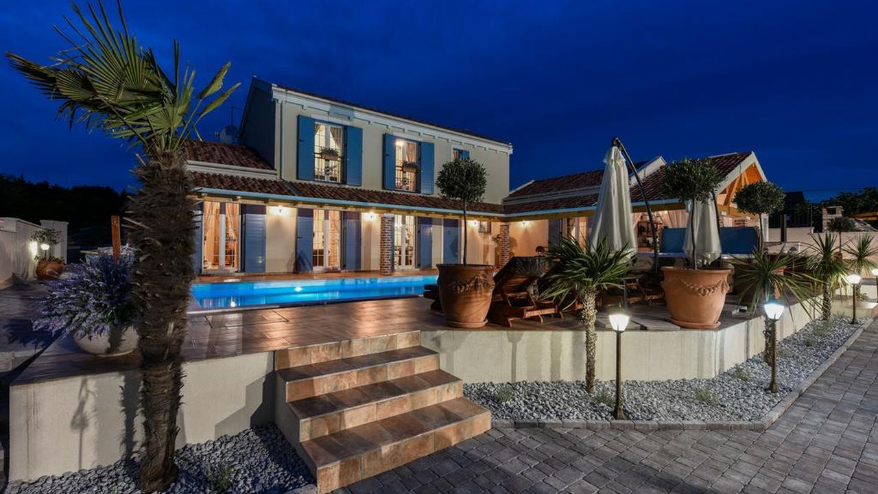 Villa-180m2 Plot-1200m2 3 Bedroom 3 Bathroom + 1 Toilet Airport Zemunik-18km Beach-300m Restaurant-1km Shop-500m Heated pool-40m2 Outdoor hot tube Private parking Every room is air-conditioned Every room has system for heating and floor heating.