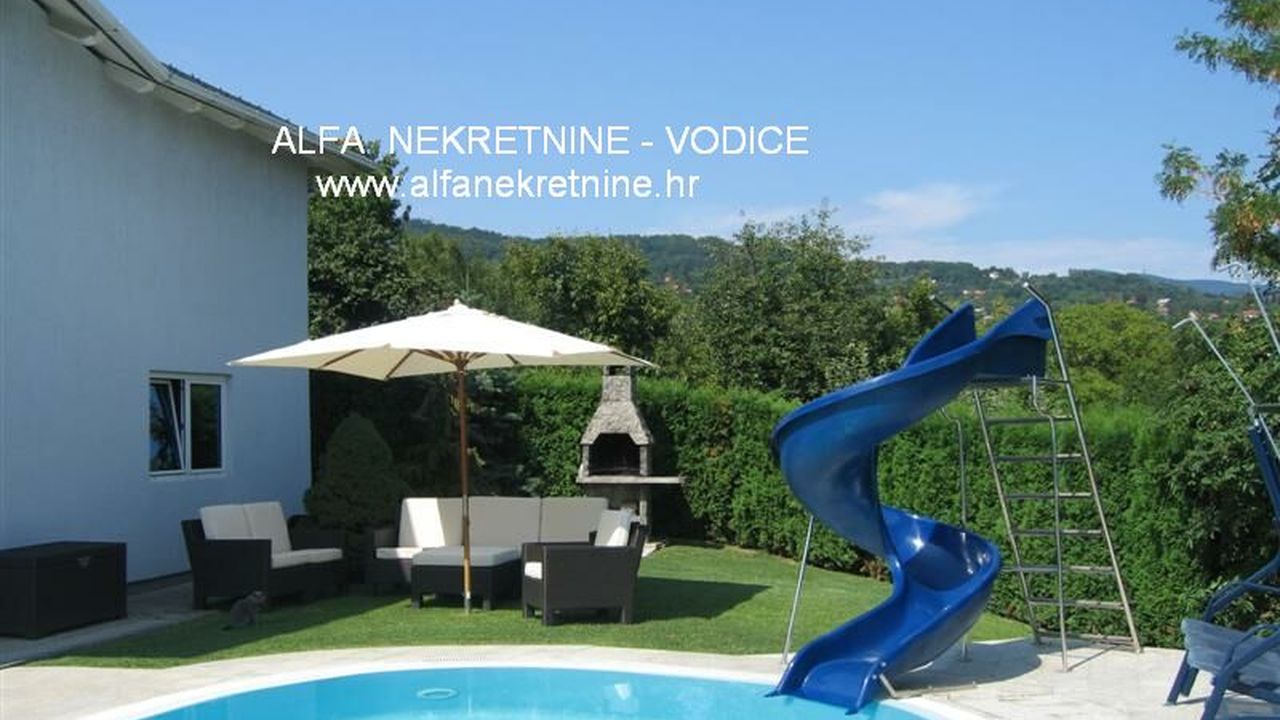 Хорватия, Загреб, Гайнице, Роскошная вилла на продажу в очень привлекательном месте, расположенном на склоне холма и с великолепным панорамным видом на город Загреб. Эта комфортабельная вилла имеет общую внутреннюю площадь 380 кв.м., на участке 2.300 кв.м. Перед домом есть бассейн (15 м) и несколько хвойных на благоустроенных лугах. Старый деревянный домик 50м2 расположен в том же дворе и используется как кладовая. В доме много света, благодаря большой стеклянной двери, через которую виден весь Загреб, которая ведет в сад с бассейном. Два гаража опираются на дом, а во дворе есть еще места для парковки. Двойная лестница внутри дома позволяет кругу двигаться по всему дому. Эта семейная вилла на первом этаже состоит из просторной гостиной с галереей, столовой, кухни, прихожей, туалета для гостей и офиса. На втором этаже находятся три спальни с двумя ванными комнатами с балконами. В гостиной хороший камин, а снаружи дом построен барбекю. Вилла имеет центральное отопление на нефти / газе, кондиционер, 3 телефонных линии, ISDN, TV / SAT, систему безопасности и сигнализации. Это роскошное поместье было построено в 2000 году из высококачественных материалов и подходит только для конкретных клиентов высокого уровня, которые могут выдержать условия высокой цены продажи.