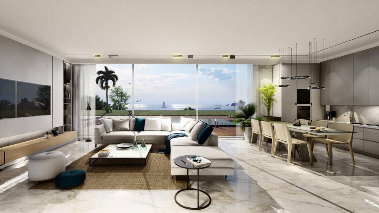 Архитектура имеет решающее значение для установки расслабленного тонуса: каждая резиденция спроектирована как пляжный дом с собственным бассейном, террасами и двумя закрытыми парковочными местами. Белые фасады способствуют еще больше настроению, в то время как облицовка, которая варьируется от природного камня до смолы или дерева, дающего домашнее и роскошное ощущение.