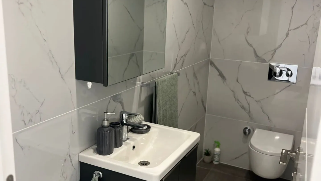 Высококачественная керамическая плитка на полу и на стенах в ванной комнате