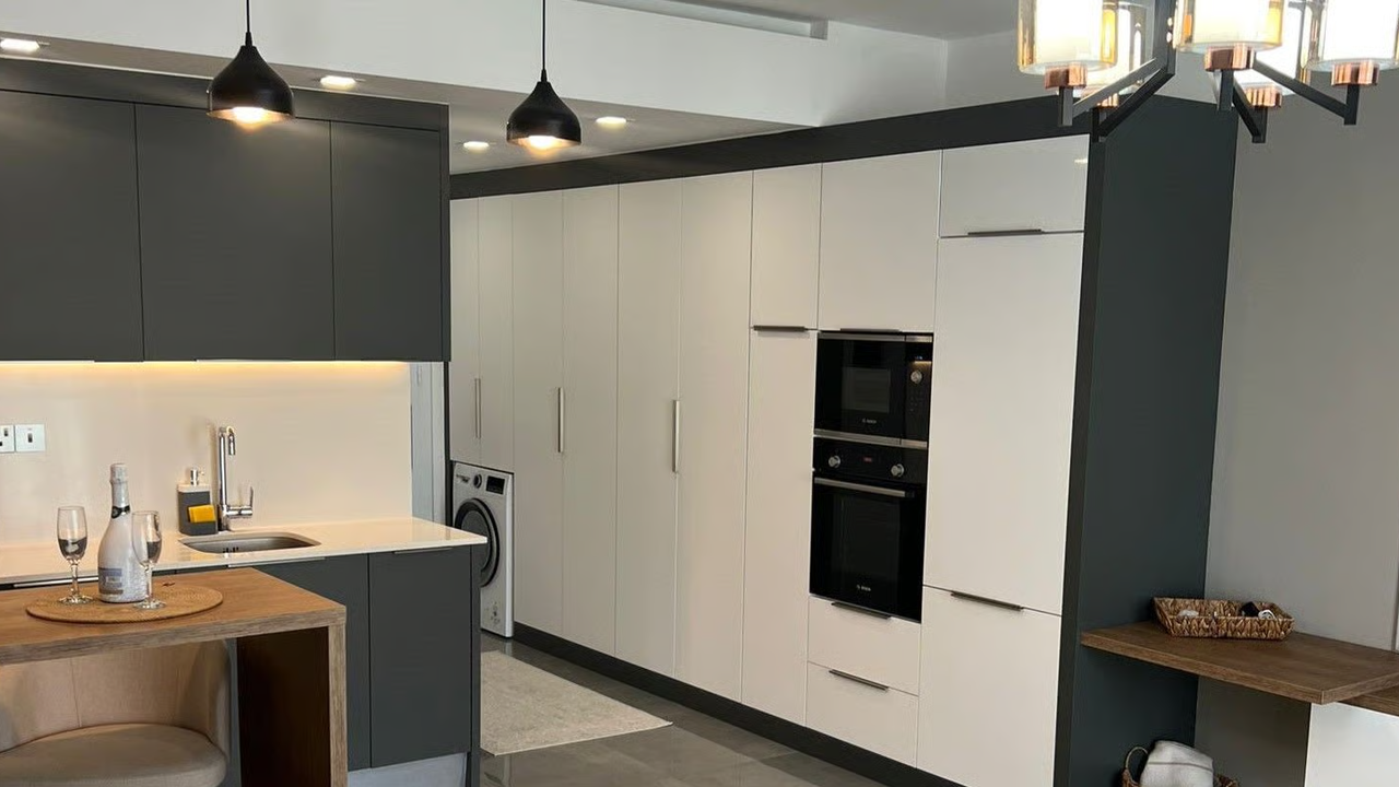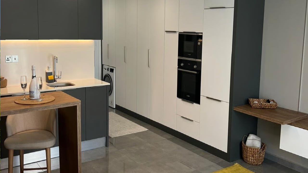 Представляем вашему вниманию меблированную студию площадью 55,6м2, расположенную в великолепном жилом комплексе. Эта стильная студия полностью готова к проживанию и оснащена всей необходимой мебелью и бытовой техникой, включая кухонную плиту, холодильник и стиральную машину.