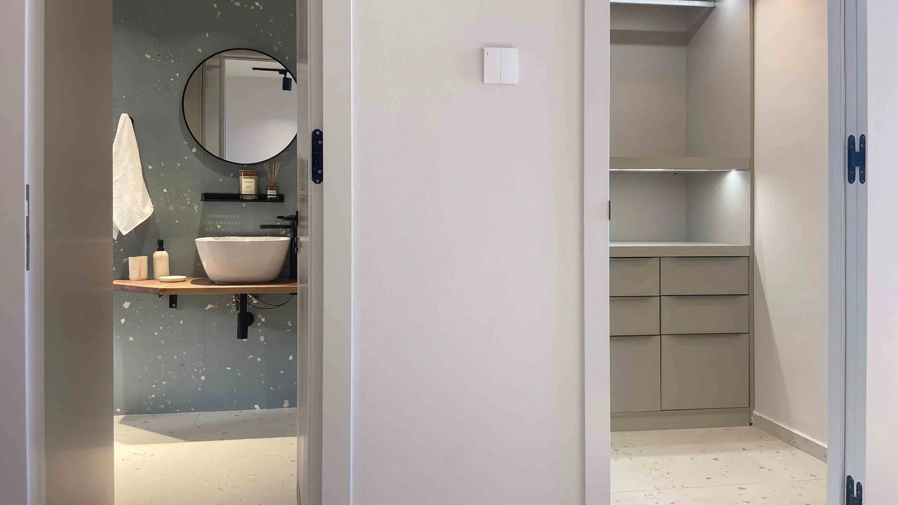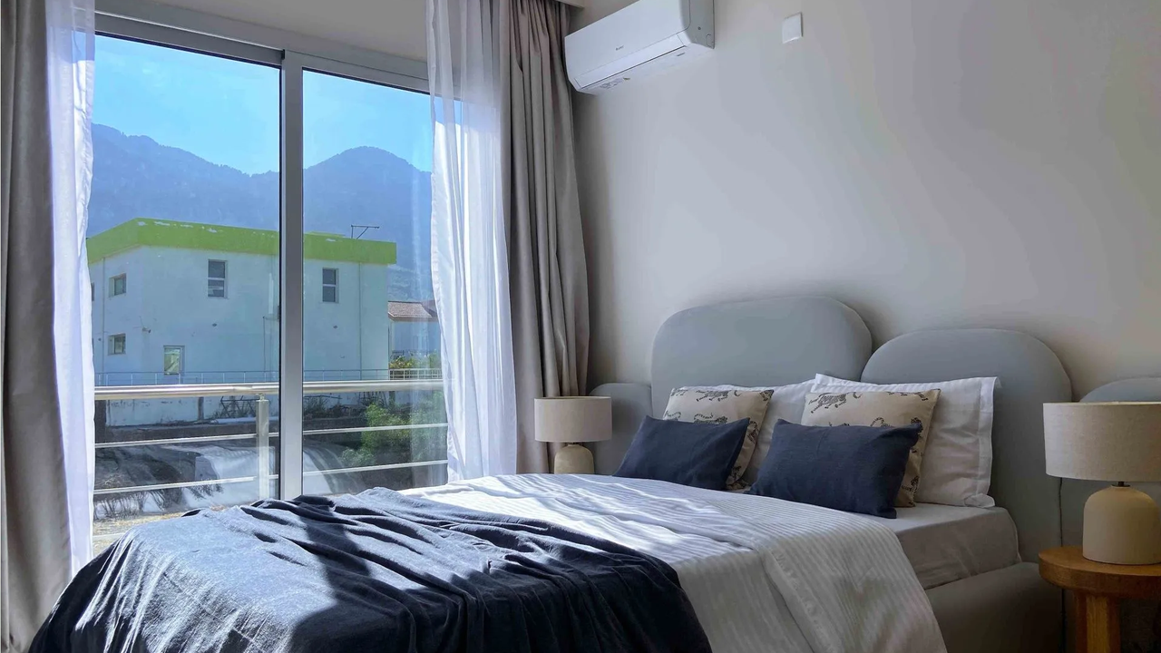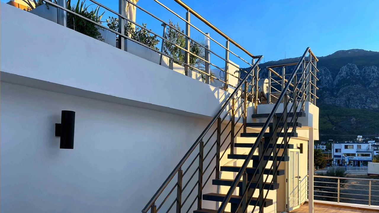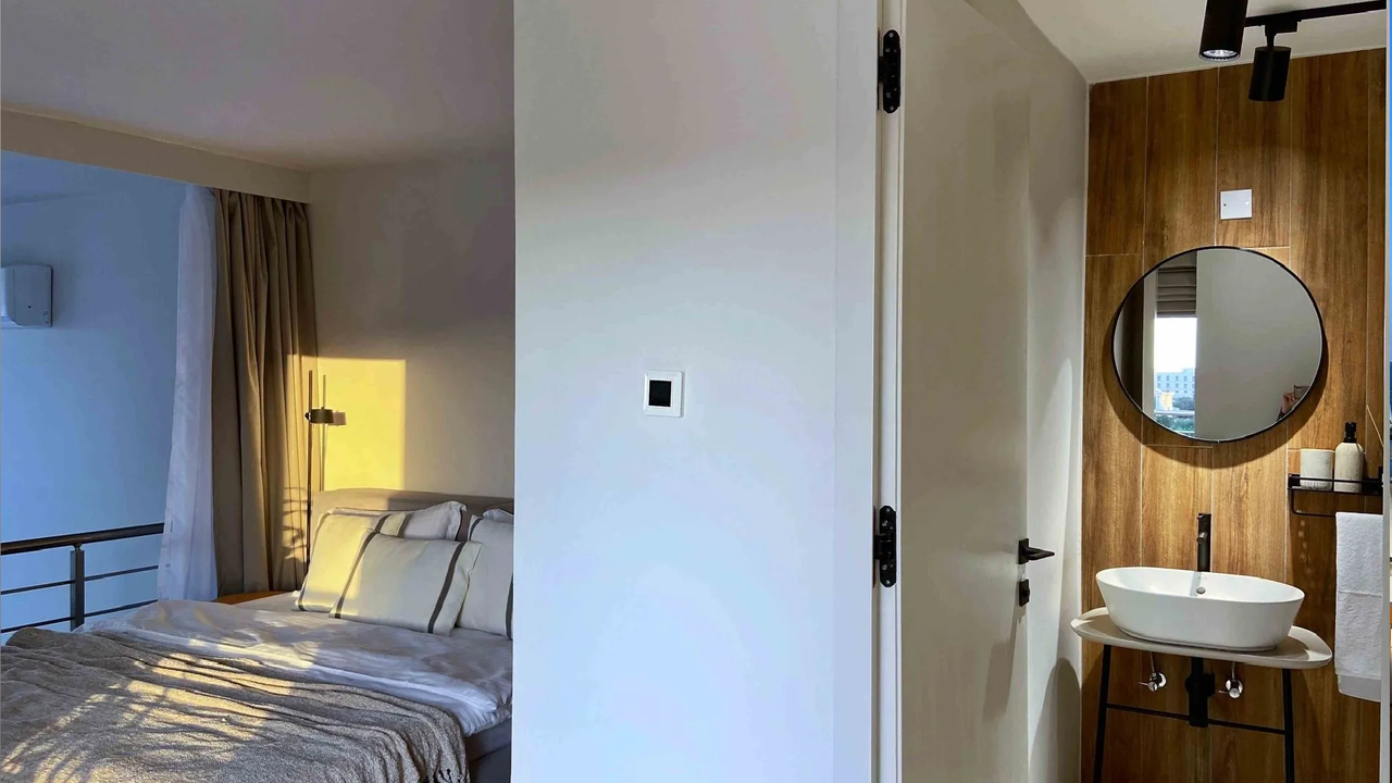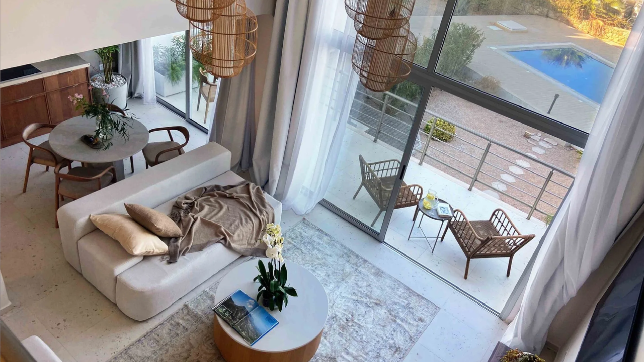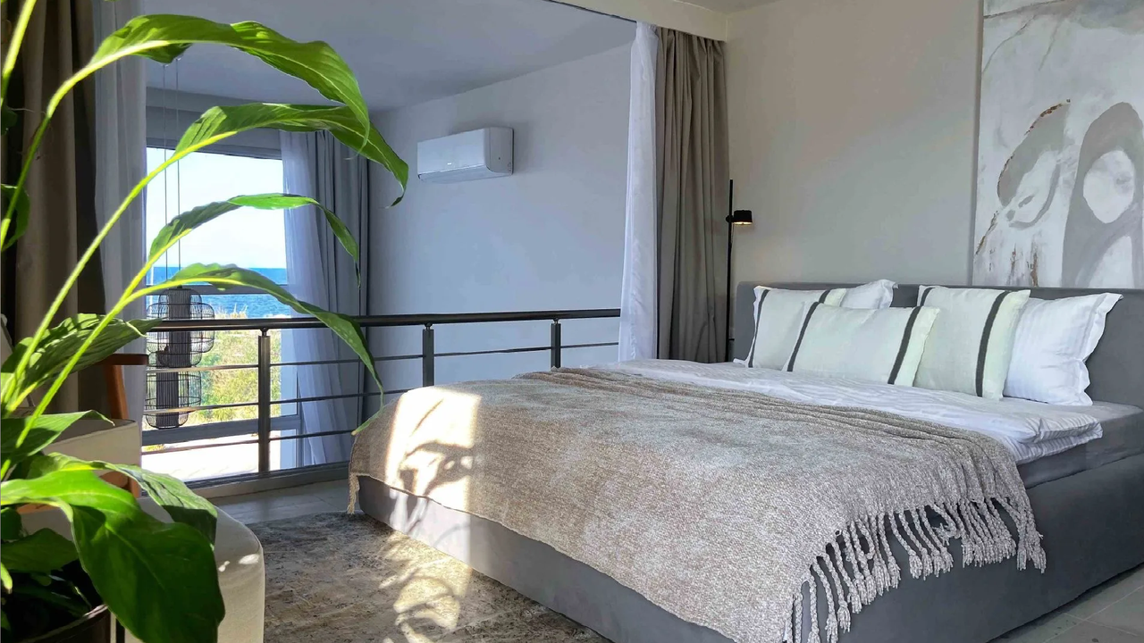 Пентхаус располагает двумя спальнями с уникальными видами: из одной открывается панорама на Киренийские горы, а из второй на верхнем этаже — чарующий вид на море. В спальне на втором этаже также имеется собственная ванная комната для максимального комфорта.