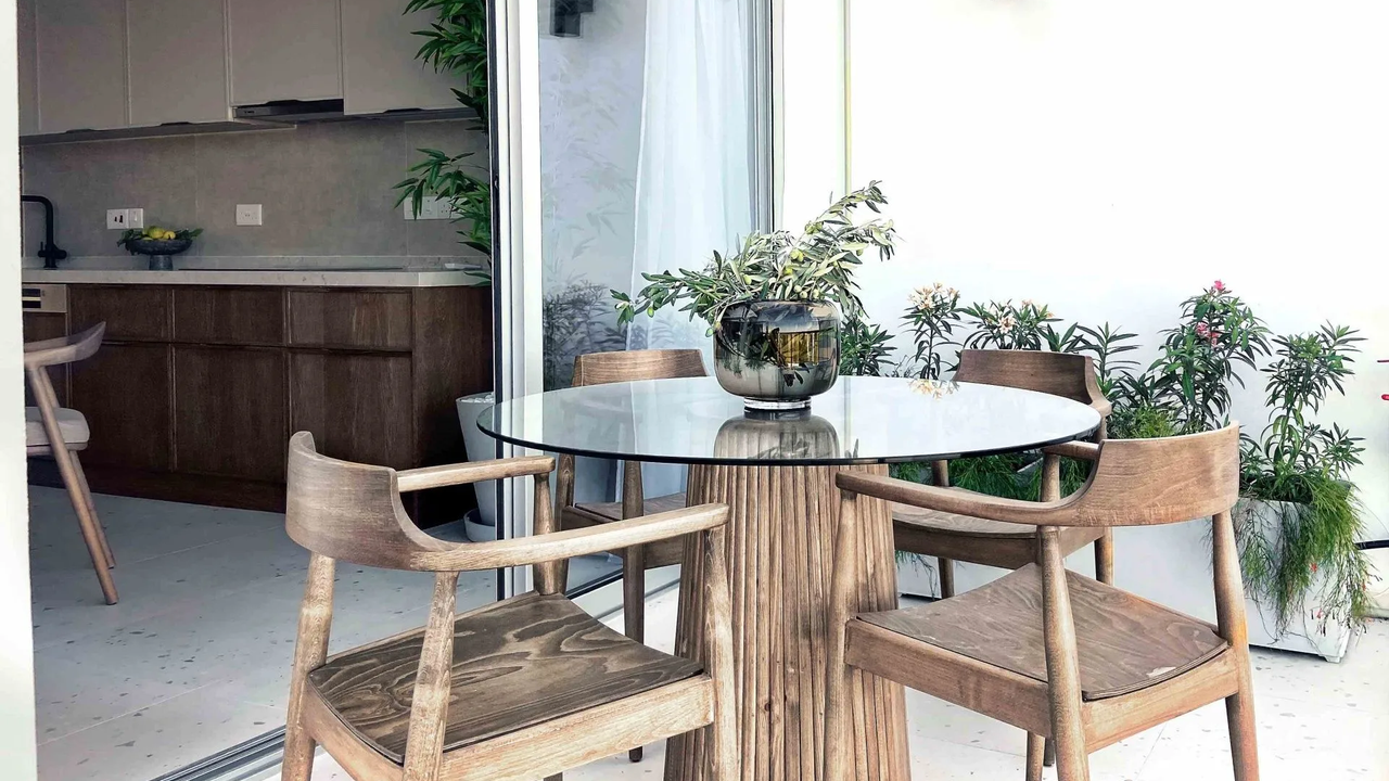 Кухня оснащена мебелью из натурального дерева и кварцевым столом, а также бытовой техникой Bosch Series 6.