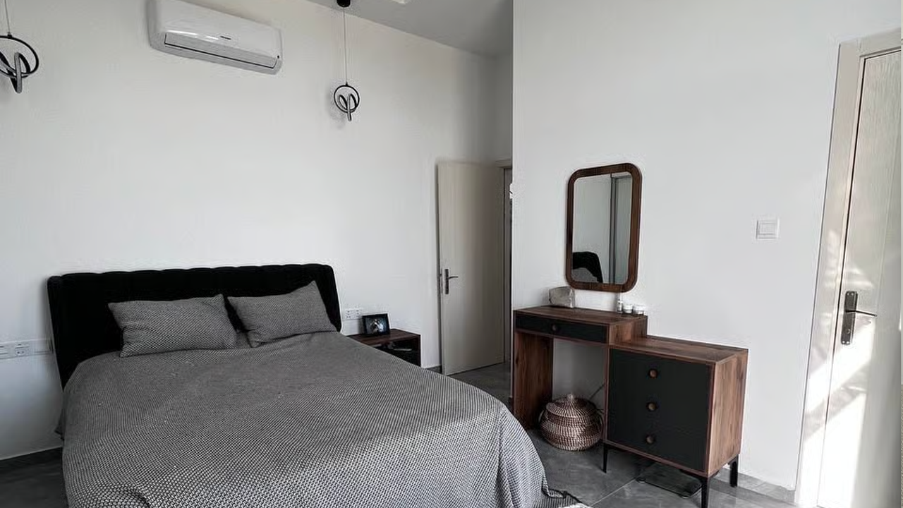 Этот уютный комплекс в зелёной и тихой зоне Лапты идеально подходит для комфортного проживания. Вилла с полной чистовой отделкой оснащена качественной кухонной мебелью, современно обустроенными тремя санузлами и просторными встроенными шкафами. Особым преимуществом является её удачное расположение — всего 5-10 минут ходьбы до кафе, супермаркетов, пляжей, аптек, банков и одной из лучших частных школ Кирении, Necat British College.