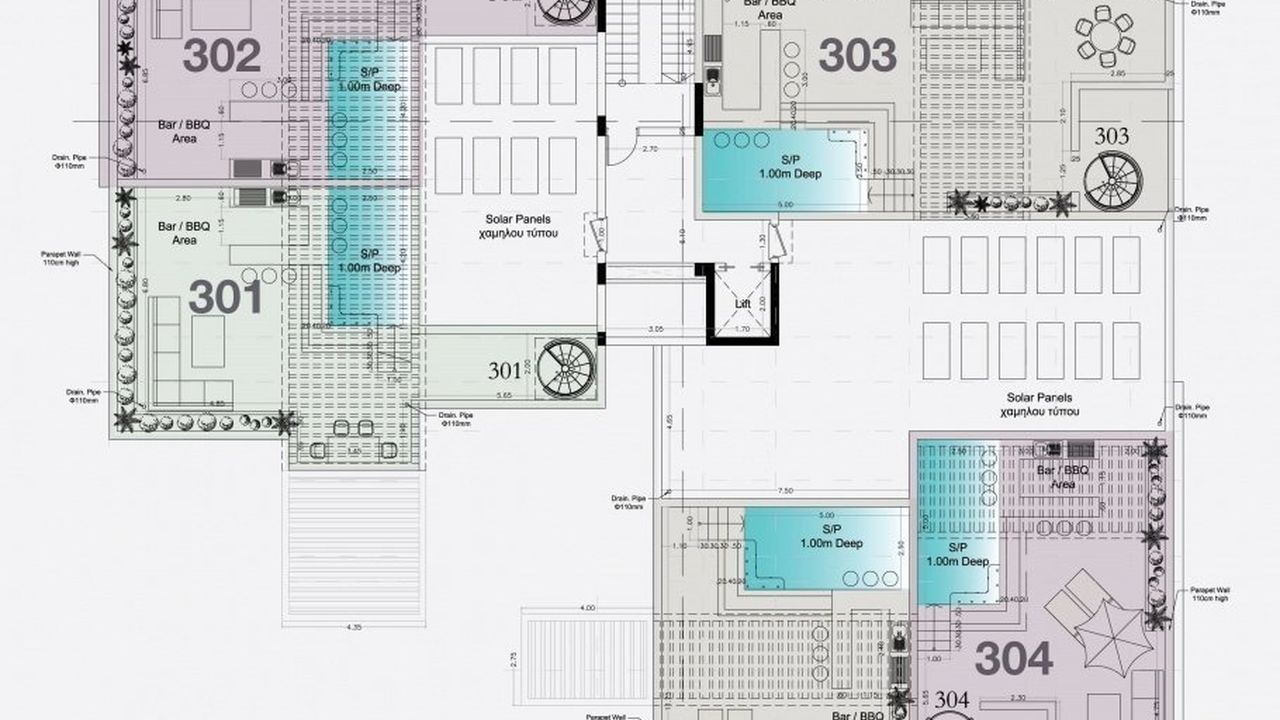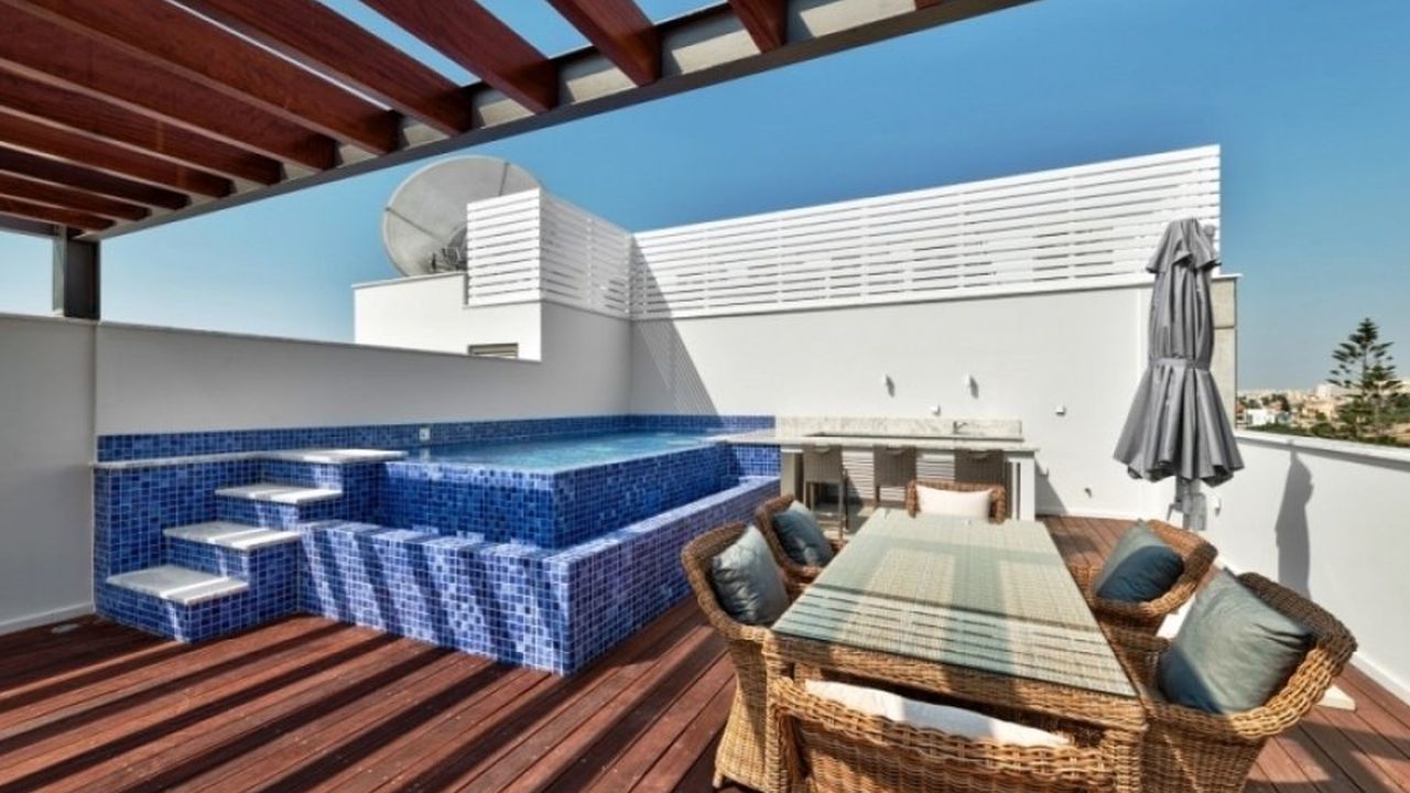 Luxury 3 bedroom penthouse 303 with a private roof garden of 109 sq.m. in a prestigious complex located in Potamos Germasogeia area of Limassol. The complex comprises 2 and 3 bedroom apartments situated in just a few minutes walk from the sea, city center and all infrastructure. Each apartment of the residence has a full convenient access to a common swimming pool, landscaped gardens and covered parking. Only best materials are being used both in construction and in fittings: double glazed windows, VRV air-conditioning, finest luxury flooring, branded kitchen, top quality doors and wardrobes, high standard sanitary ware appliances. The complex offers gym, sauna and kid's playground. The apartment has a private swimming pool on the roof.
