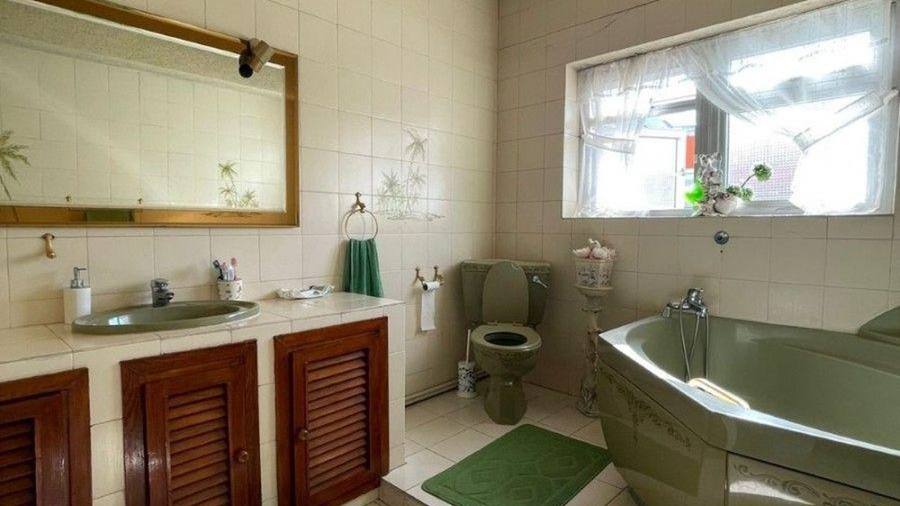 Он состоит из 3 спален, 1 большой ванной комнаты, кухни открытого плана, гостиной и столовой. Он оснащен кондиционером и бензиновым центральным отоплением с камином. Есть также крытая парковка.