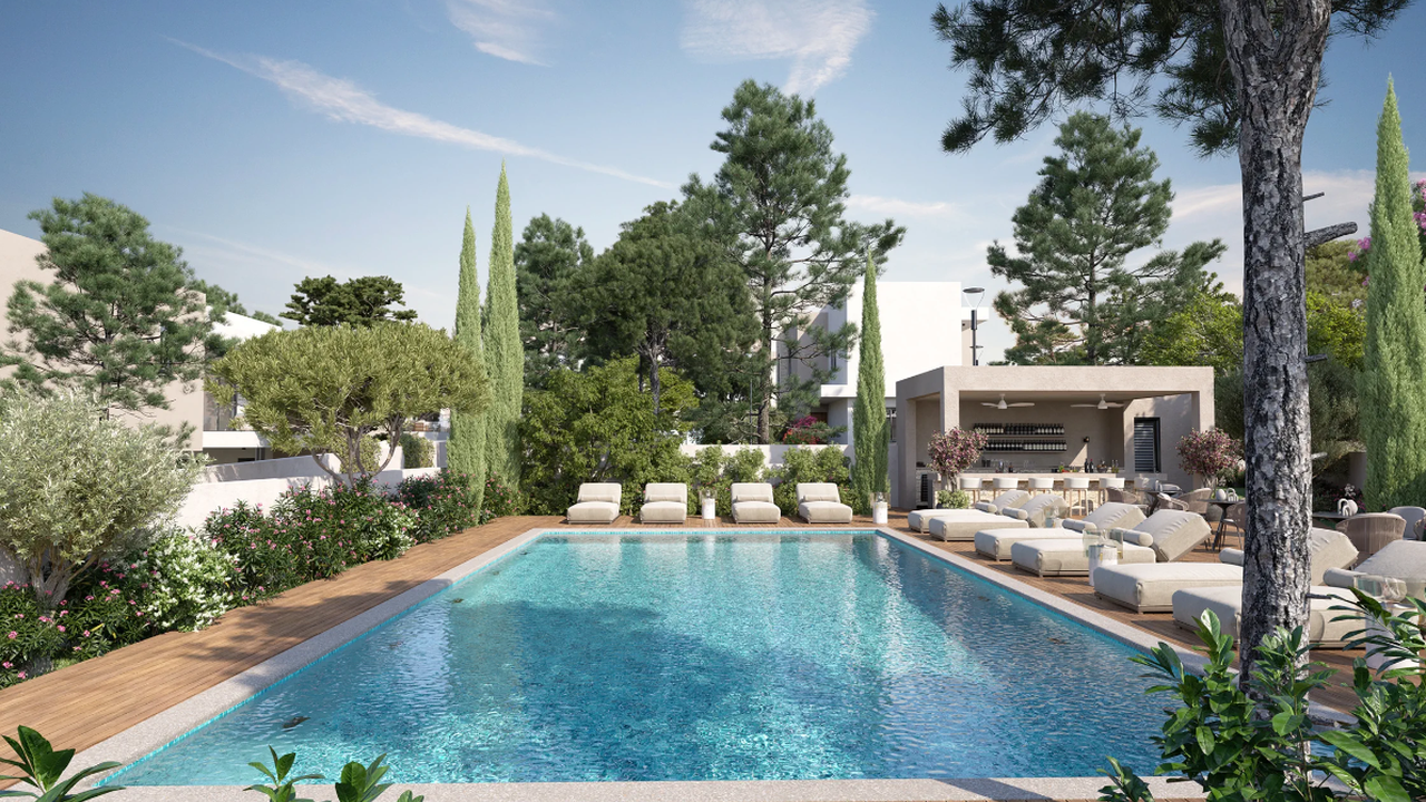 Частный жилой комплекс закрытого типа, состоящий из 8 домов с 3-4 спальнями и ванными комнатами в каждом, с общим бассейном, зоной барбекю и детской игровой площадкой. Все дома имеют класс энергоэффективности А.