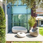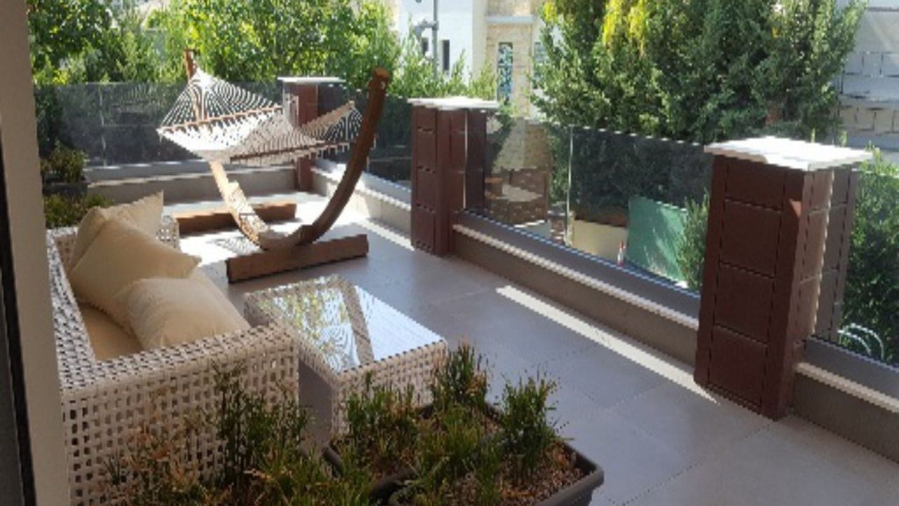 На участке дома расположен бассейн, организован красивый сад с фруктовыми деревьями и туями. Есть панорамный вид на море с roof garden.