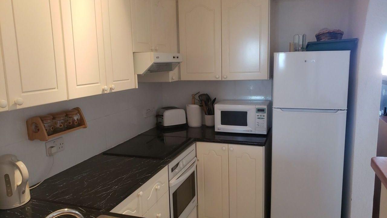 Квартира полностью меблирована и состоит из гостиной с прекрасным балконом, кухней, двумя спальнями и ванной комнатой. В комплексе имеется общий бассейн и крытая парковка.